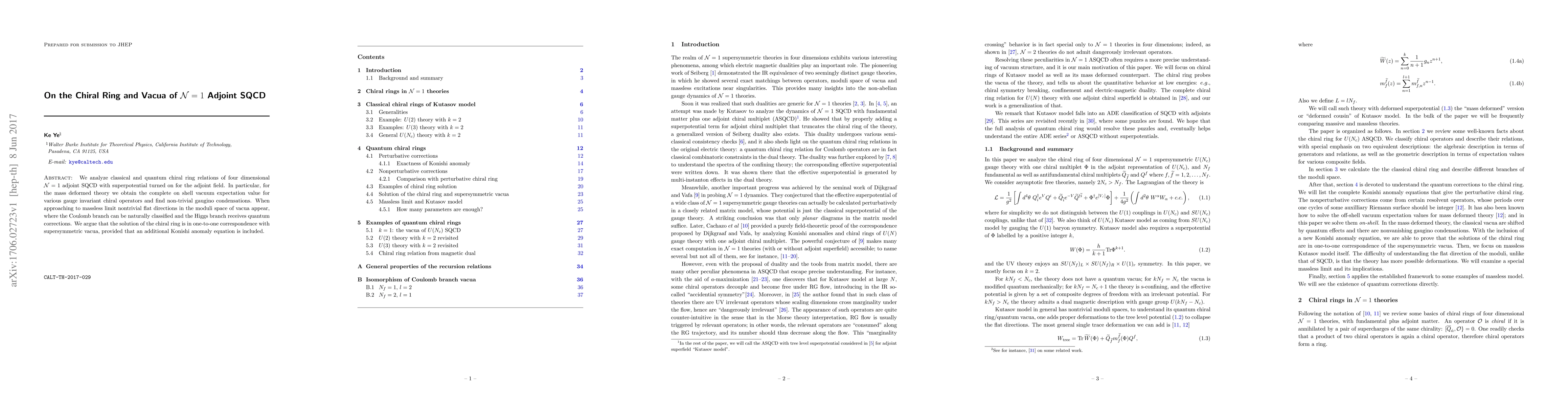We analyze classical and quantum chiral ring relations of four dimensional ${\cal N} = 1$ adjoint SQCD with superpotential turned on for the adjoint field. In particular, for the mass deformed theory we obtain the complete on shell vacuum expectation value for various gauge invariant chiral operators and find non-trivial gaugino condensations. When approaching to massless limit nontrivial flat directions in the moduli space of vacua appear, where the Coulomb branch can be naturally classified and the Higgs branch receives quantum corrections. We argue that the solution of the chiral ring is in one-to-one correspondence with supersymmetric vacua, provided that an additional Konishi anomaly equation is included.