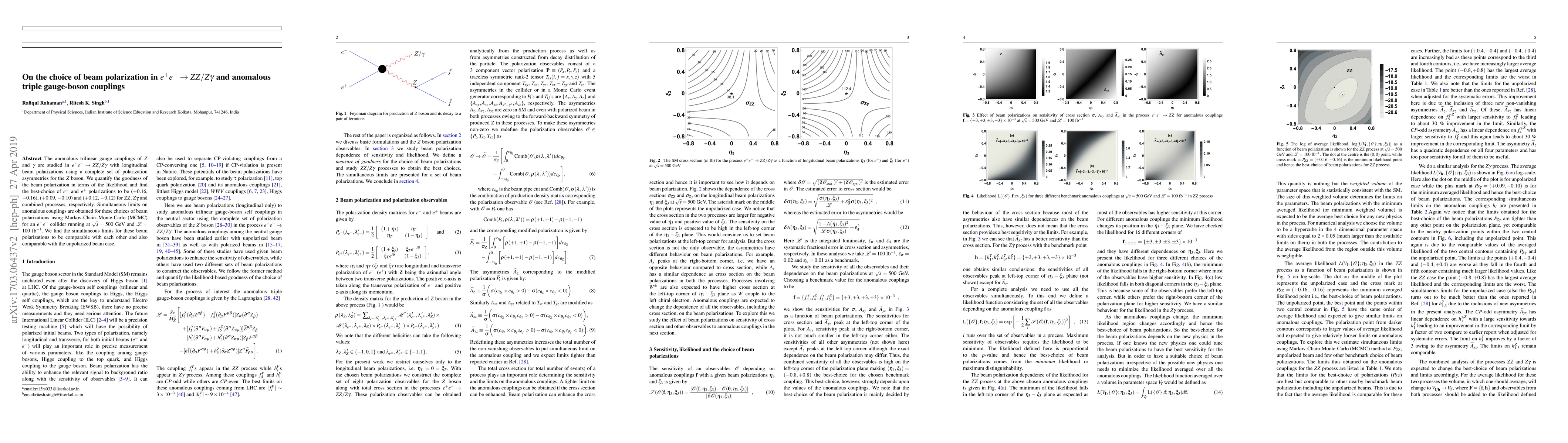 The anomalous trilinear gauge couplings of $Z$ and $\gamma$ are studied in $e^+e^-\to ZZ/Z\gamma$ with longitudinal beam polarizations using a complete set of polarization asymmetries for the $Z$ boson. We quantify the goodness of the beam polarization in terms of the likelihood and find the best-choice of $e^-$ and $e^+$ polarizations to be ($+0.16$, $-0.16$), ($+0.09$, $-0.10$) and ($+0.12$, $-0.12$) for $ZZ$, $Z\gamma$ and combined processes, respectively. Simultaneous limits on anomalous couplings are obtained for these choices of beam polarizations using Markov-Chain--Monte-Carlo (MCMC) for an $e^+e^-$ collider running at $\sqrt{s}=500$ GeV and $\mathcal{L}=100$ fb$^{-1}$. We find the simultaneous limits for these beam polarizations to be comparable with each other and also comparable with the unpolarized beam case.
