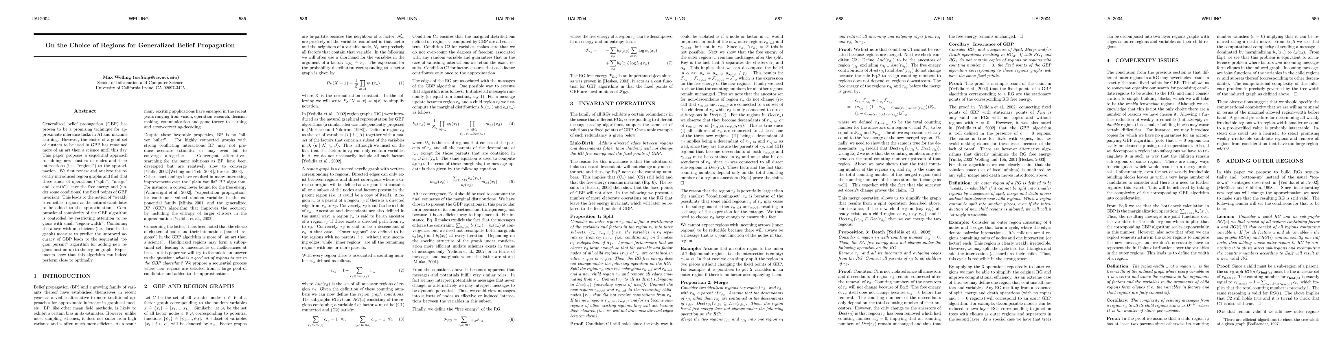 Generalized belief propagation (GBP) has proven to be a promising technique for approximate inference tasks in AI and machine learning. However, the choice of a good set of clusters to be used in GBP has remained more of an art then a science until this day. This paper proposes a sequential approach to adding new clusters of nodes and their interactions (i.e. "regions") to the approximation. We first review and analyze the recently introduced region graphs and find that three kinds of operations ("split", "merge" and "death") leave the free energy and (under some conditions) the fixed points of GBP invariant. This leads to the notion of "weakly irreducible" regions as the natural candidates to be added to the approximation. Computational complexity of the GBP algorithm is controlled by restricting attention to regions with small "region-width". Combining the above with an efficient (i.e. local in the graph) measure to predict the improved accuracy of GBP leads to the sequential "region pursuit" algorithm for adding new regions bottom-up to the region graph. Experiments show that this algorithm can indeed perform close to optimally.
