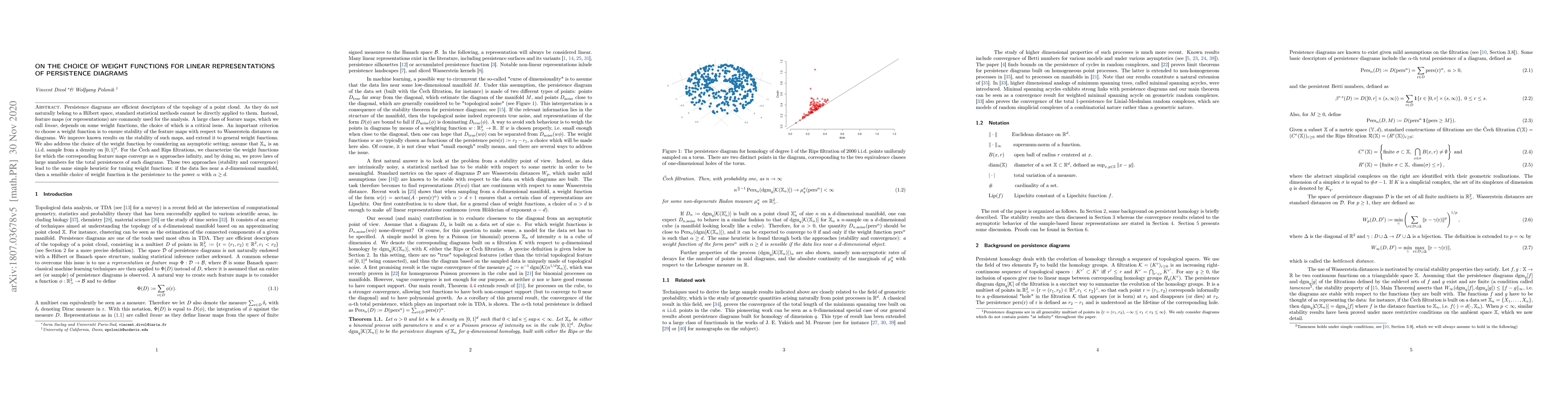 This paper discusses the selection of weight functions for linear representations of persistence diagrams, emphasizing the importance of stability under Wasserstein distances. It provides improved stability results and characterizes weight functions that ensure convergence for \v{C}ech and Rips filtrations, ultimately suggesting that for data near a $d$-dimensional manifold, a weight function of persistence to the power $\alpha \geq d$ is optimal.