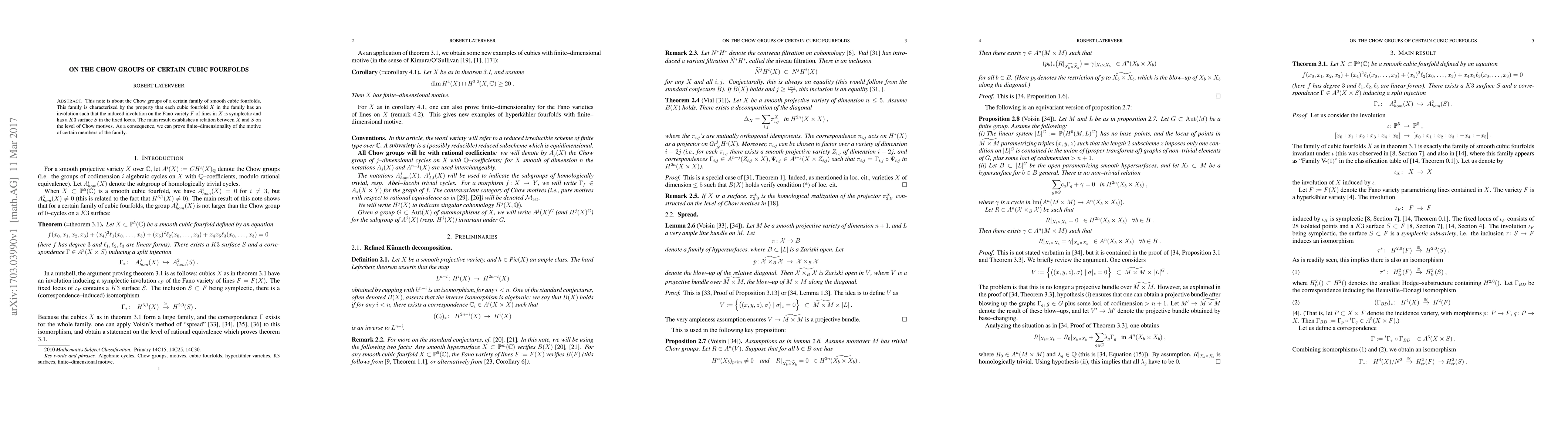 This note is about the Chow groups of a certain family of smooth cubic fourfolds. This family is characterized by the property that each cubic fourfold $X$ in the family has an involution such that the induced involution on the Fano variety $F$ of lines in $X$ is symplectic and has a $K3$ surface $S$ in the fixed locus. The main result establishes a relation between $X$ and $S$ on the level of Chow motives. As a consequence, we can prove finite-dimensionality of the motive of certain members of the family.