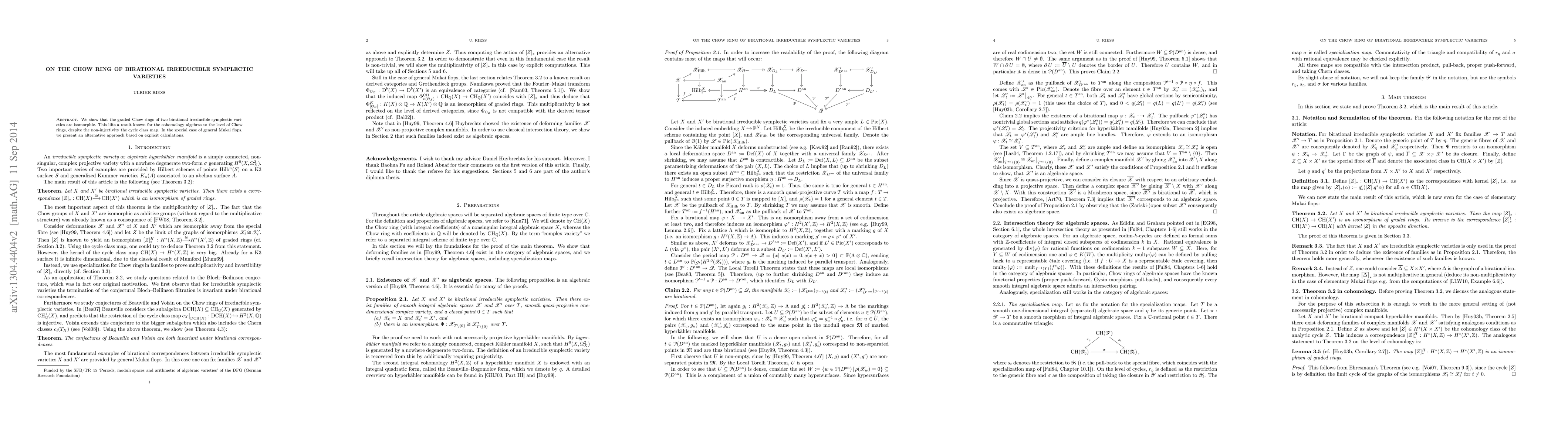 We show that the graded Chow rings of two birational irreducible symplectic varieties are isomorphic. This lifts a result known for the cohomology algebras to the level of Chow rings, despite the non-injectivity the cycle class map. In the special case of general Mukai flops, we present an alternative approach based on explicit calculations.