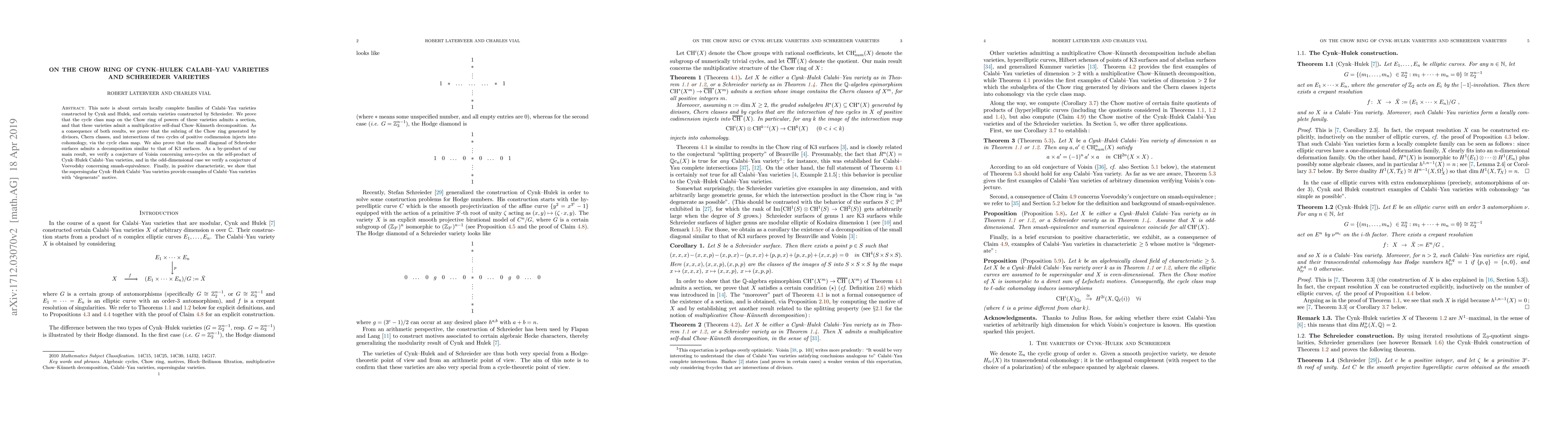 This note is about certain locally complete families of Calabi-Yau varieties constructed by Cynk and Hulek, and certain varieties constructed by Schreieder. We prove that the cycle class map on the Chow ring of powers of these varieties admits a section, and that these varieties admit a multiplicative self-dual Chow-Kuenneth decomposition. As a consequence of both results, we prove that the subring of the Chow ring generated by divisors, Chern classes, and intersections of two cycles of positive codimension injects into cohomology, via the cycle class map. We also prove that the small diagonal of Schreieder surfaces admits a decomposition similar to that of K3 surfaces. As a by-product of our main result, we verify a conjecture of Voisin concerning zero-cycles on the self-product of Cynk-Hulek Calabi-Yau varieties, and in the odd-dimensional case we verify a conjecture of Voevodsky concerning smash-equivalence. Finally, in positive characteristic, we show that the supersingular Cynk-Hulek Calabi-Yau varieties provide examples of Calabi-Yau varieties with "degenerate" motive.
