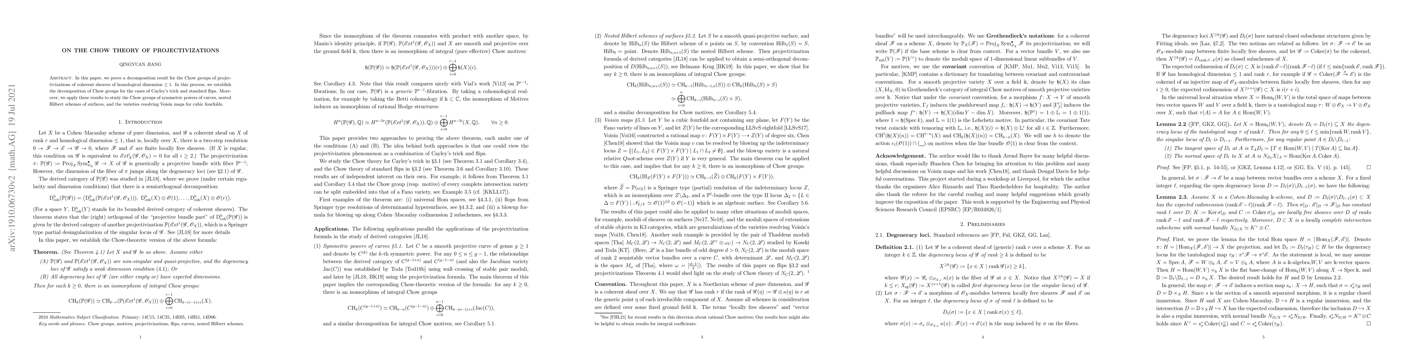 This paper presents a decomposition result for the Chow groups of projectivizations of coherent sheaves with homological dimension ≤1, applying the findings to symmetric powers of curves, nested Hilbert schemes, and varieties resolving Voisin maps for cubic fourfolds. The study also covers the Chow groups of Cayley's trick and standard flips.
