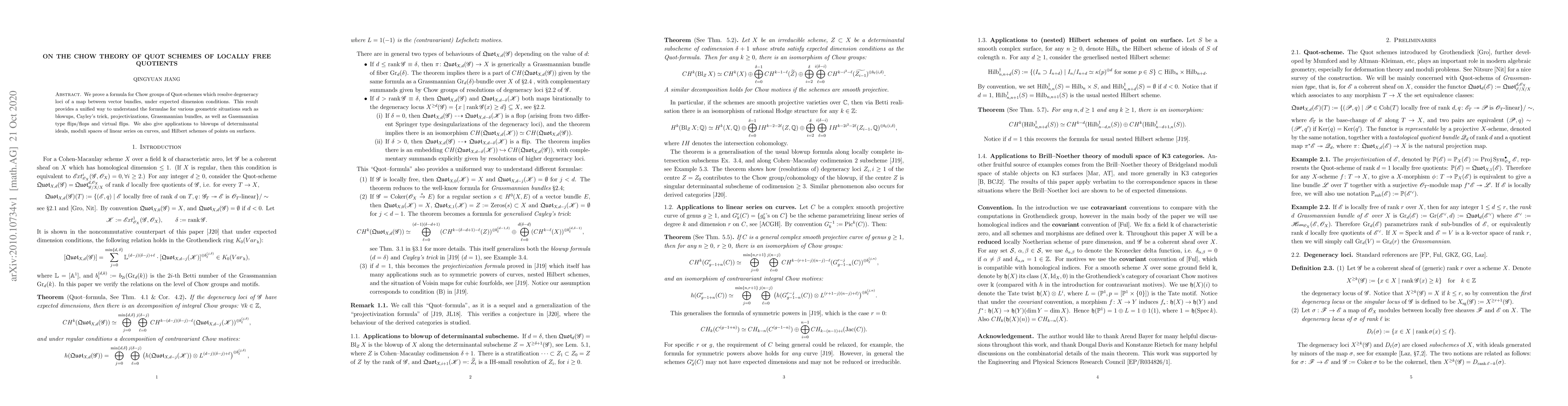 The paper establishes a formula for Chow groups of Quot schemes that resolves degeneracy loci in vector bundle maps, offering a unified understanding of diverse geometric situations and introducing new phenomena like Grassmannian flips/flops. Applications include blowups of determinantal ideals, moduli spaces of linear series, and Hilbert schemes on surfaces.