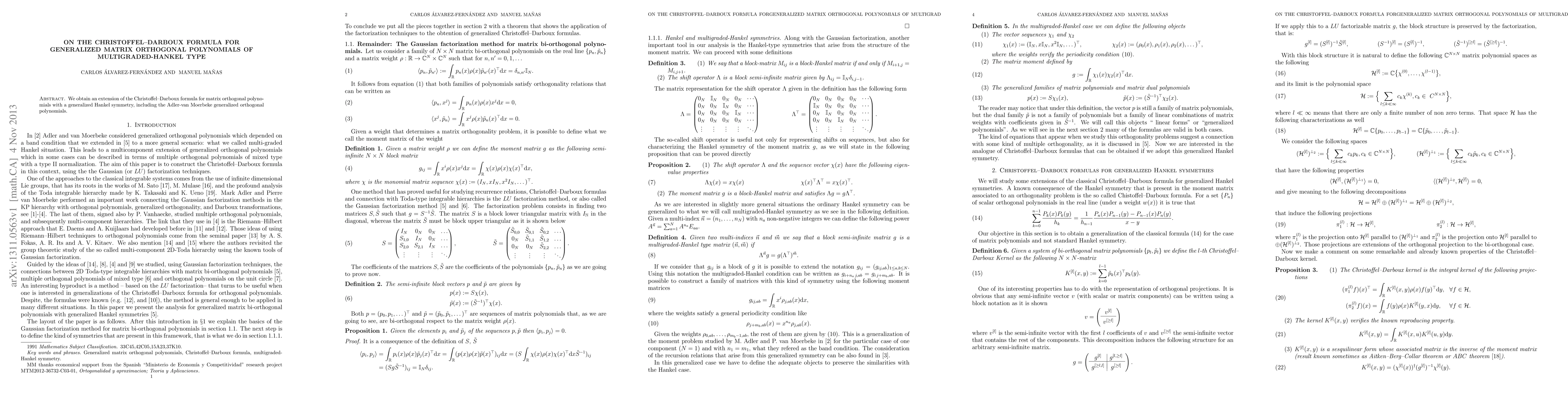 Summary: The paper extends the Christoffel-Darboux formula to generalized matrix orthogonal polynomials with Hankel symmetry, specifically incorporating Adler-van Moerbeke polynomials. This extension provides a new framework for analyzing these multigraded-Hankel type polynomials.