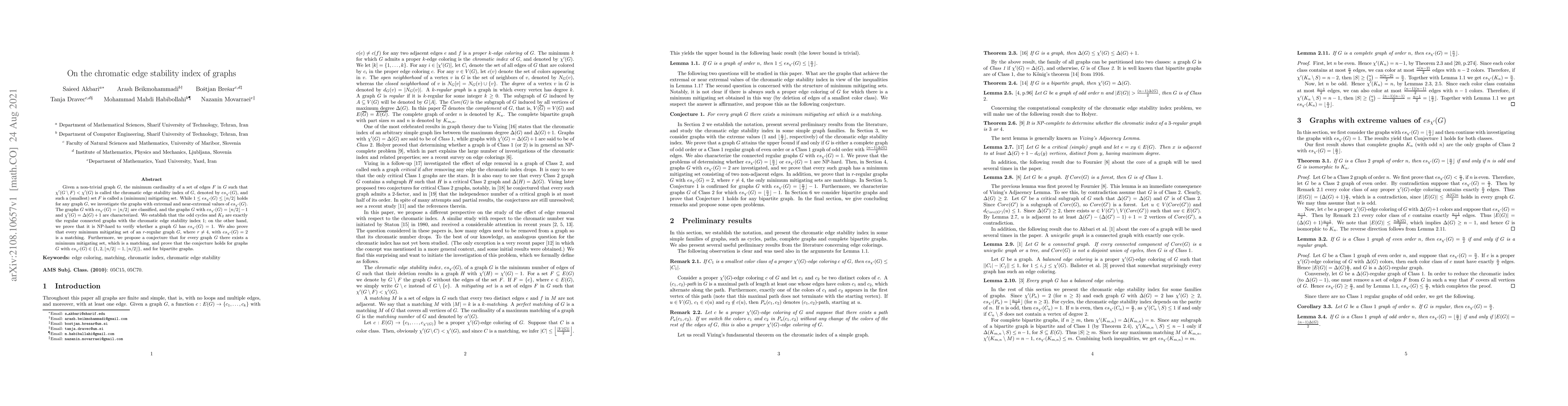 This paper investigates the chromatic edge stability index of graphs, focusing on extremal and near-extremal values, and proposes a conjecture that every graph has a minimum mitigating set which is a matching.
