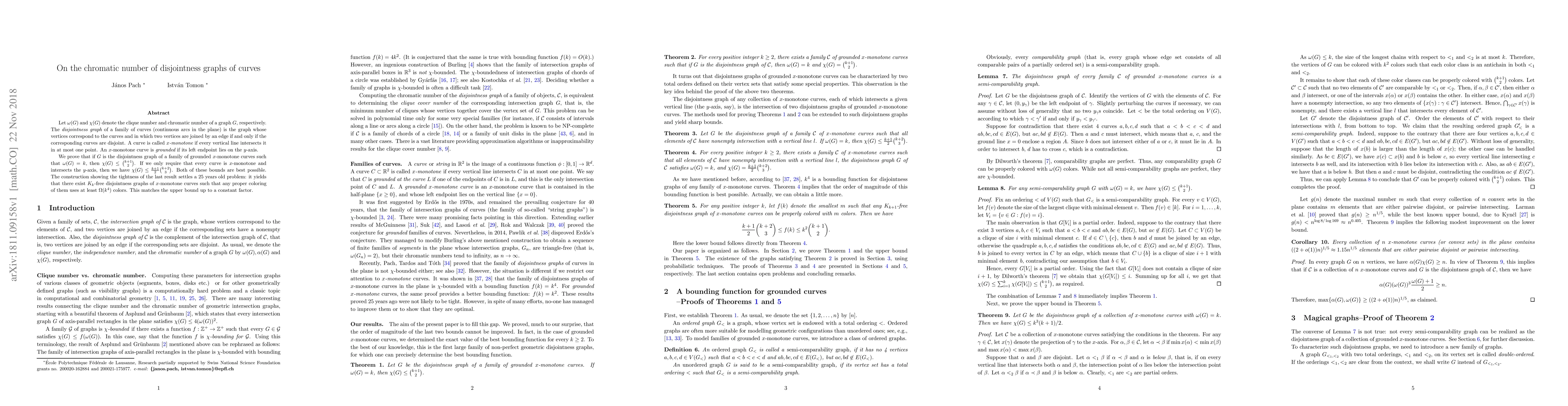 Let $\omega(G)$ and $\chi(G)$ denote the clique number and chromatic number of a graph $G$, respectively. The {\em disjointness graph} of a family of curves (continuous arcs in the plane) is the graph whose vertices correspond to the curves and in which two vertices are joined by an edge if and only if the corresponding curves are disjoint. A curve is called {\em $x$-monotone} if every vertical line intersects it in at most one point. An $x$-monotone curve is {\em grounded} if its left endpoint lies on the $y$-axis. We prove that if $G$ is the disjointness graph of a family of grounded $x$-monotone curves such that $\omega(G)=k$, then $\chi(G)\leq \binom{k+1}{2}$. If we only require that every curve is $x$-monotone and intersects the $y$-axis, then we have $\chi(G)\leq \frac{k+1}{2}\binom{k+2}{3}$. Both of these bounds are best possible. The construction showing the tightness of the last result settles a 25 years old problem: it yields that there exist $K_k$-free disjointness graphs of $x$-monotone curves such that any proper coloring of them uses at least $\Omega(k^{4})$ colors. This matches the upper bound up to a constant factor.