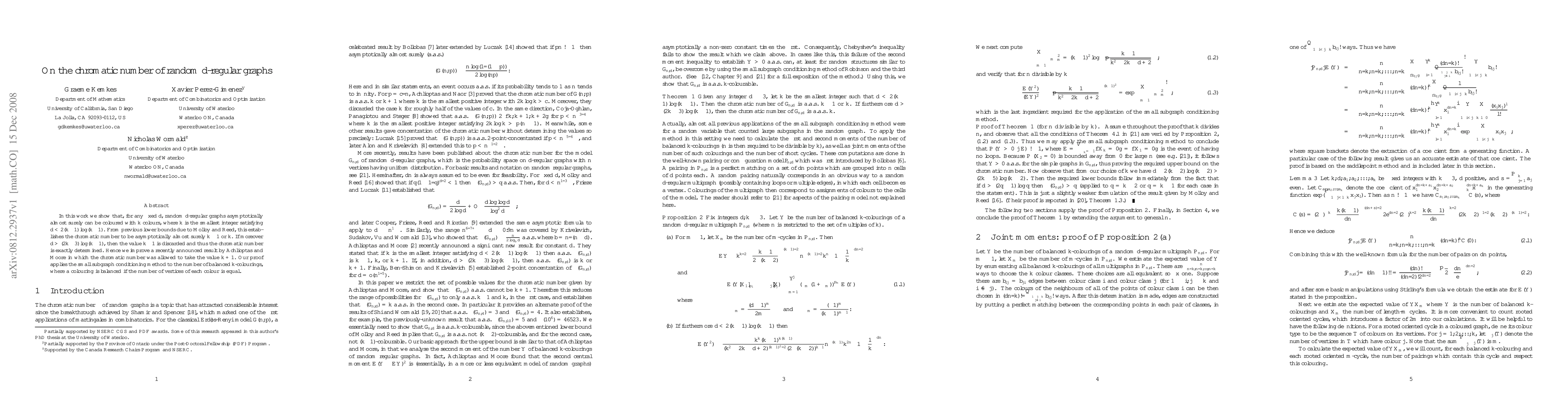 This paper demonstrates that random d-regular graphs can almost surely be coloured with k colours, where k is the smallest integer satisfying d < 2(k-1)log(k-1). It establishes the chromatic number as k-1 or k, improving upon previous results by determining it exactly as k when d > (2k-3)log(k-1).