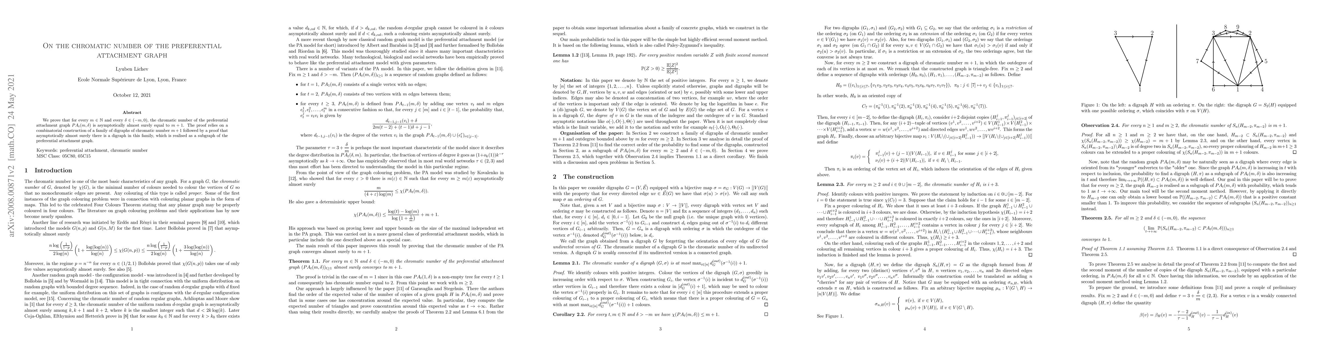 We prove that for every $m\in \mathbb N$ and every $\delta\in (-m,0)$, the chromatic number of the preferential attachment graph $PA_t(m, \delta)$ is asymptotically almost surely equal to $m+1$. The proof relies on a combinatorial construction of a family of digraphs of chromatic number $m+1$ followed by a proof that asymptotically almost surely there is a digraph in this family, which is realised as a subgraph of the preferential attachment graph.