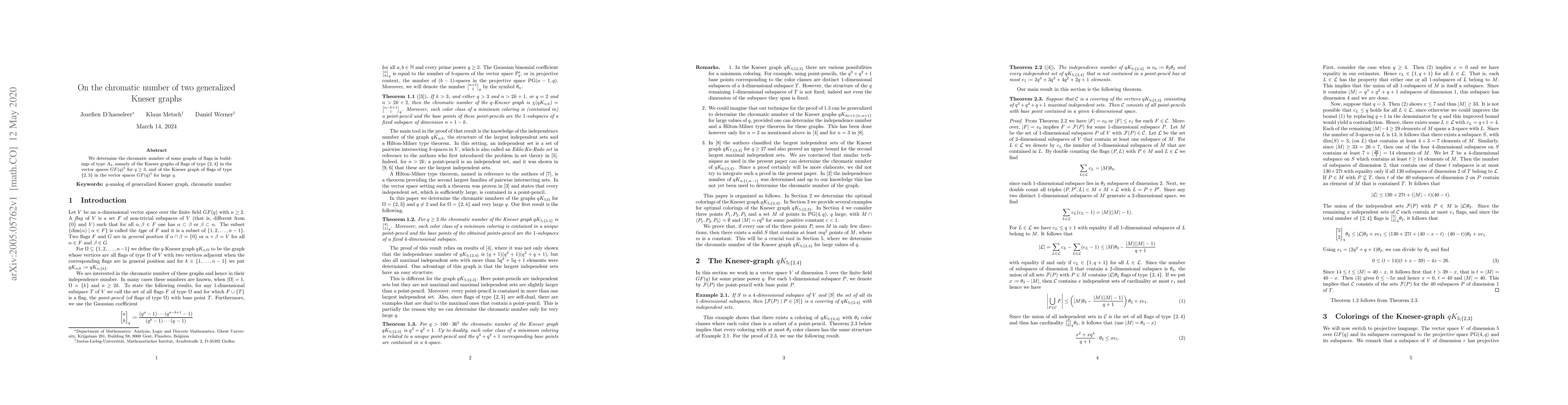 This paper identifies the chromatic number for certain Kneser graphs related to vector spaces over finite fields. Specifically, it determines the chromatic numbers for Kneser graphs of flags of type {2,4} in GF(q)^5 for q>=3, and for flags of type {2,3} in GF(q)^5 for large q.