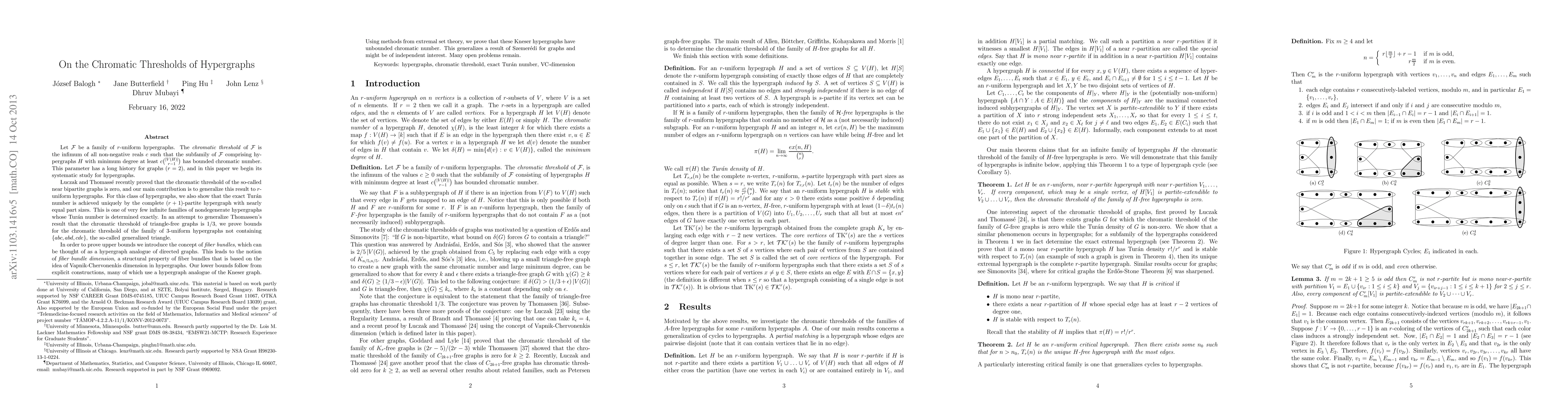 This paper studies the chromatic thresholds of r-uniform hypergraphs, generalizing results previously known for graphs. It proves that the chromatic threshold for near bipartite hypergraphs is zero and determines the exact Turán number for a specific class of hypergraphs, introducing the concept of fiber bundles and fiber bundle dimension for upper bounds.