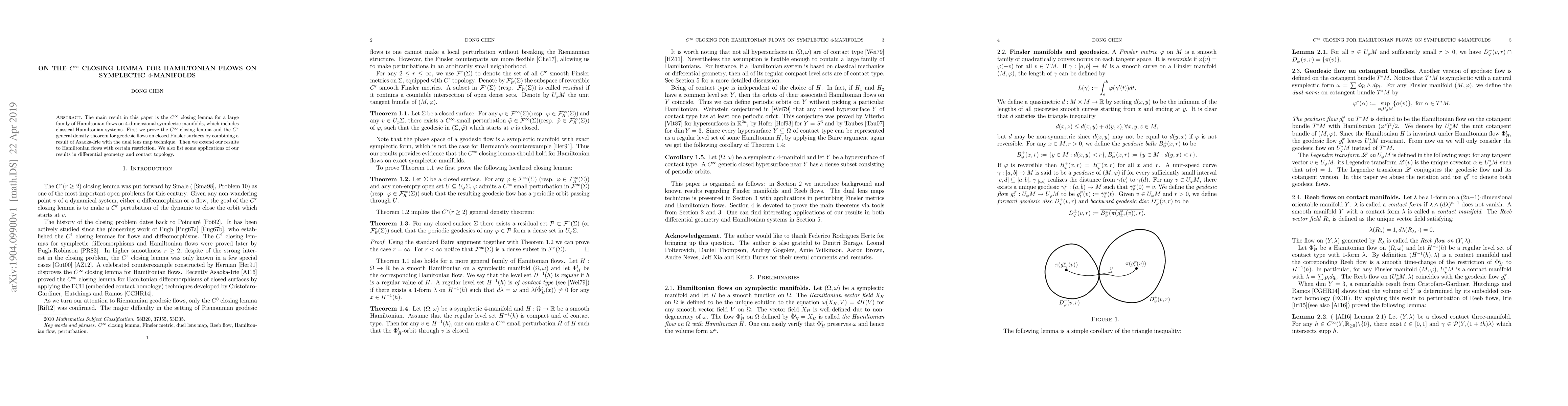 The main result in this paper is the $C^{\infty}$ closing lemma for a large family of Hamiltonian flows on $4$-dimensional symplectic manifolds, which includes classical Hamiltonian systems. First we prove the $C^{\infty}$ closing lemma and the $C^r$ general density theorem for geodesic flows on closed Finsler surfaces by combining a result of Asaoka-Irie with the dual lens map technique. Then we extend our results to Hamitonian flows with certain restriction. We also list some applications of our results in differential geometry and contact topology.