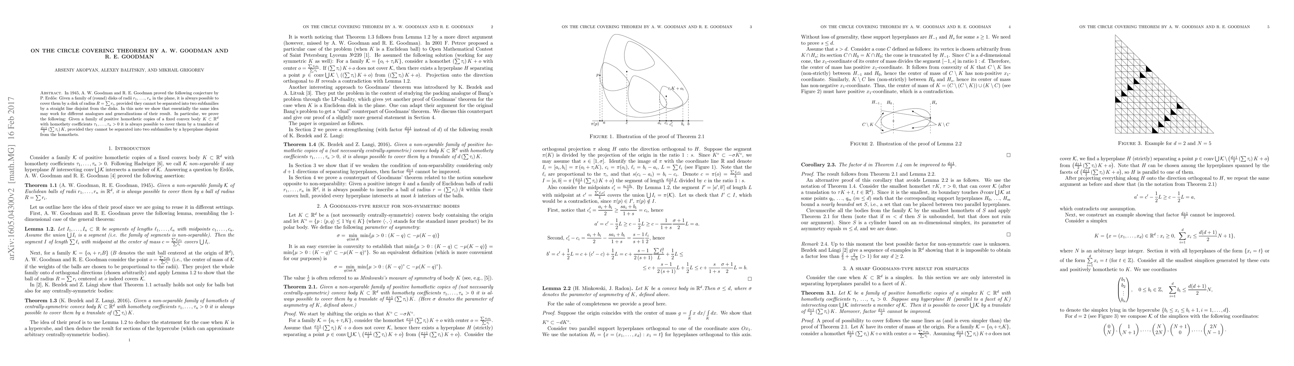In 1945, A. W. Goodman and R. E. Goodman proved the following conjecture by P. Erd\H{o}s: Given a family of (round) disks of radii $r_1$, $\ldots$, $r_n$ in the plane it is always possible to cover them by a disk of radius $R = \sum r_i$, provided they cannot be separated into two subfamilies by a straight line disjoint from the disks. In this note we show that essentially the same idea may work for different analogues and generalizations of their result. In particular, we prove the following: Given a family of positive homothetic copies of a fixed convex body $K \subset \mathbb{R}^d$ with homothety coefficients $\tau_1, \ldots, \tau_n > 0$ it is always possible to cover them by a translate of $\frac{d+1}{2}\left(\sum \tau_i\right)K$, provided they cannot be separated into two subfamilies by a hyperplane disjoint from the homothets.