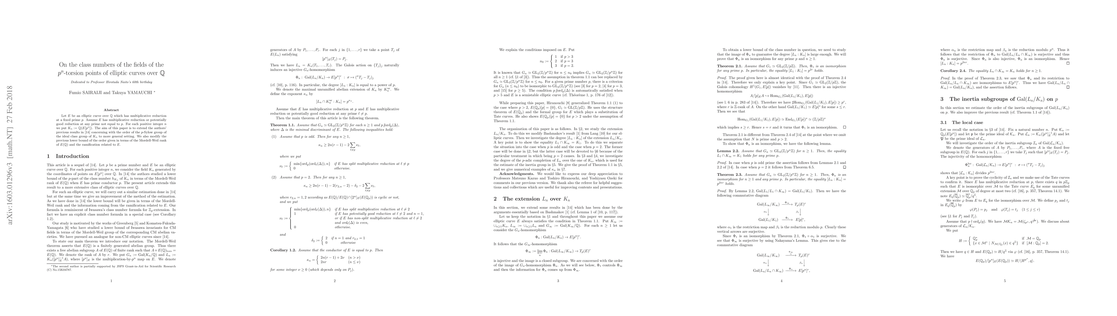 Let $E$ be an elliptic curve over $\mathbb{Q}$ which has multiplicative reduction at a fixed prime $p$. For each positive integer $n$ we put $K_n:=\mathbb{Q}(E[p^n])$. The aim of this paper is to extend the author's previous our results concerning with the order of the $p$-Sylow group of the ideal class group of $K_n$ to more general setting. We also modify the previous lower bound of the order and describe the new lower bound in terms of the Mordell-Weil rank of $E(\mathbb{Q})$ and the ramification related to $E$.