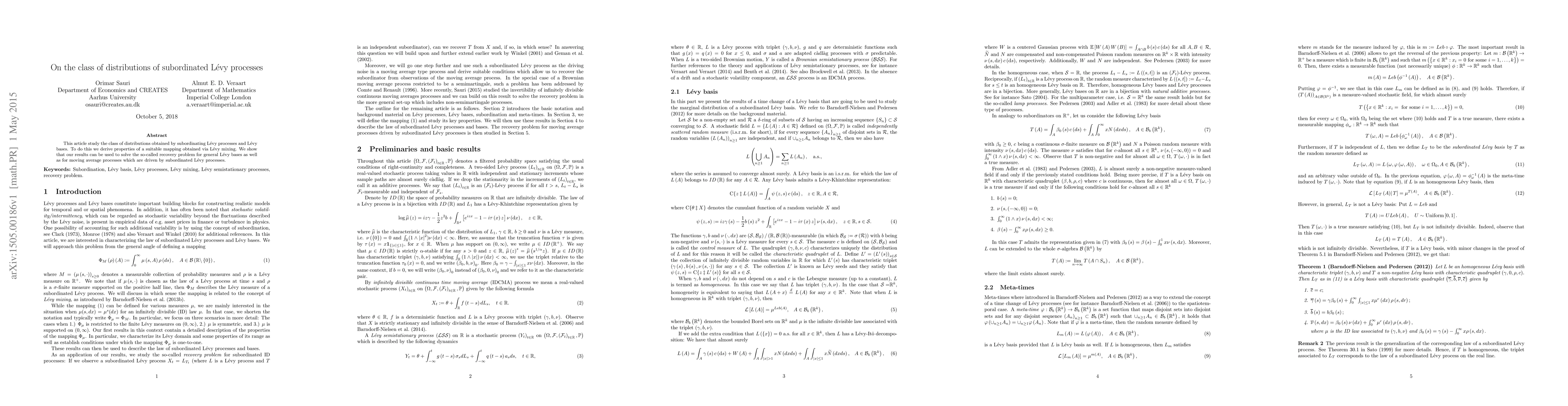 This paper explores the distributions of subordinated Lévy processes and bases, deriving properties of a mapping via Lévy mixing. The findings are applied to solve the recovery problem for both general Lévy bases and moving average processes driven by these subordinated processes.
