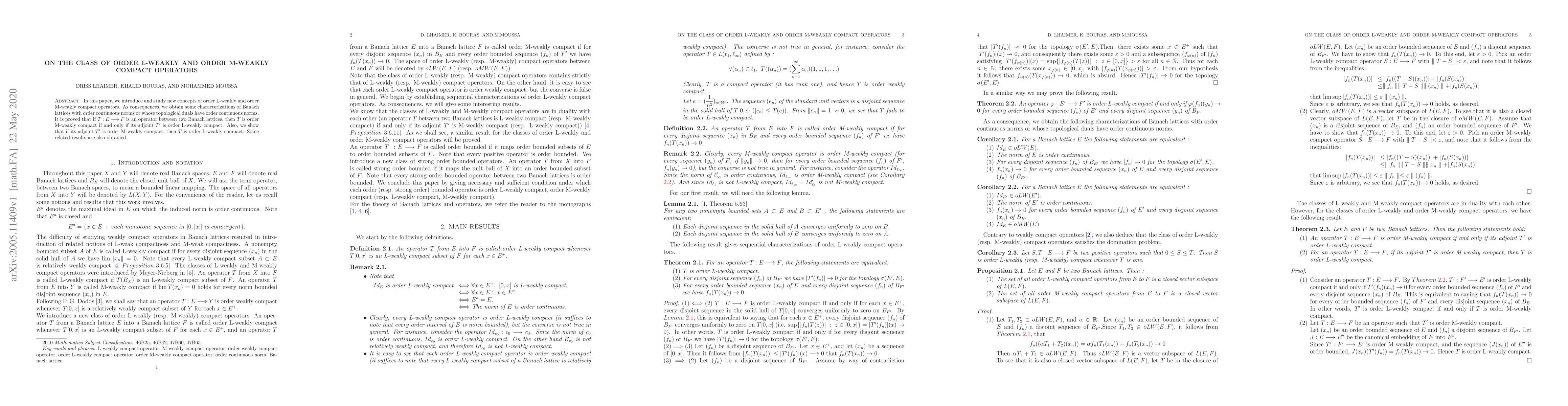 This paper introduces order L-weakly and order M-weakly compact operators, providing new characterizations for Banach lattices with specific norm properties. It proves that an operator T is order M-weakly compact if and only if its adjoint T' is order L-weakly compact, and conversely, if T' is order M-weakly compact, then T is order L-weakly compact.