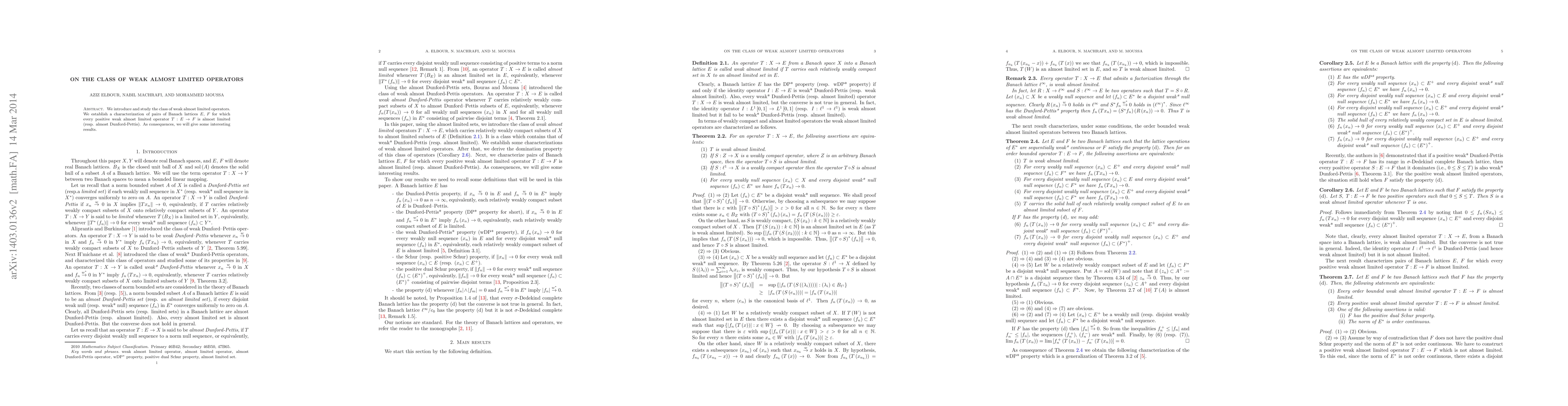 We introduce and study the class of weak almost limited operators. We establish a characterization of pairs of Banach lattices $E$, $F$ for which every positive weak almost limited operator $T:E\rightarrow F$ is almost limited (resp. almost Dunford-Pettis). As consequences, we will give some interesting results.
