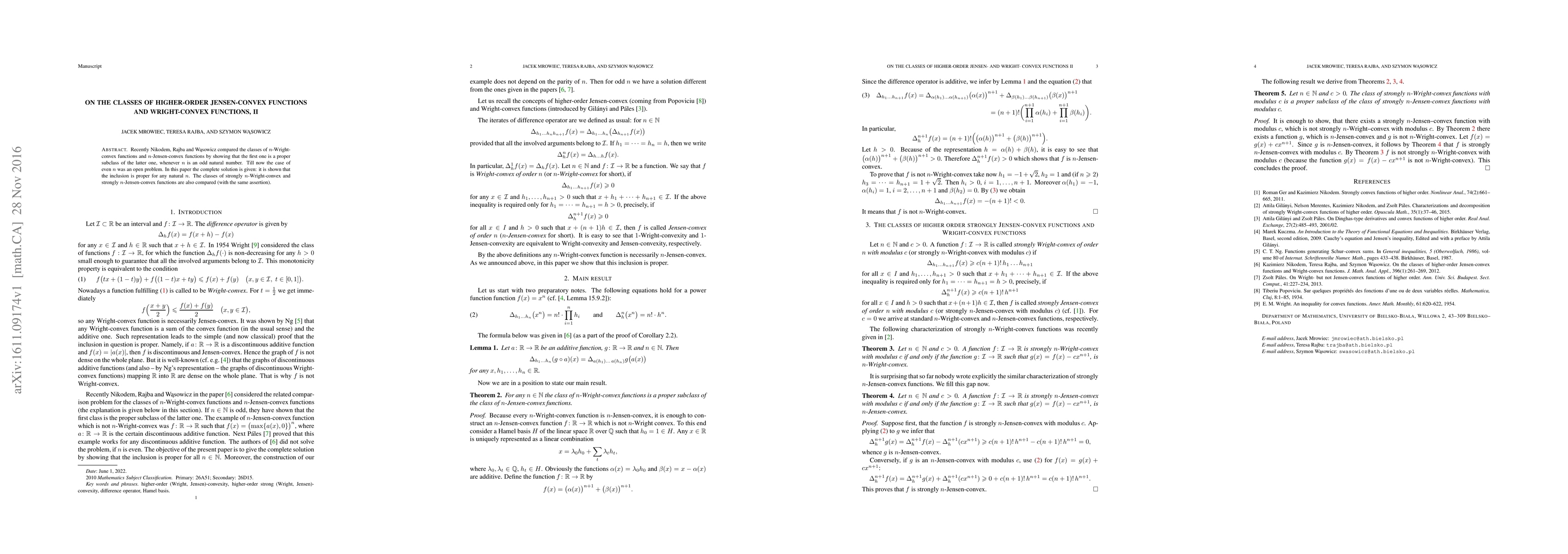 Recently Nikodem, Rajba and W\k{a}sowicz compared the classes of n-Wright-convex functions and n-Jensen-convex functions by showing that the first one is a proper subclass of the latter one, whenever n is an odd natural number. Till now the case of even n was an open problem. In this paper the complete solution is given: it is shown that the inclusion is proper for any natural n. The classes of strongly n-Wright-convex and strongly n-Jensen-convex functions are also compared (with the same assertion).