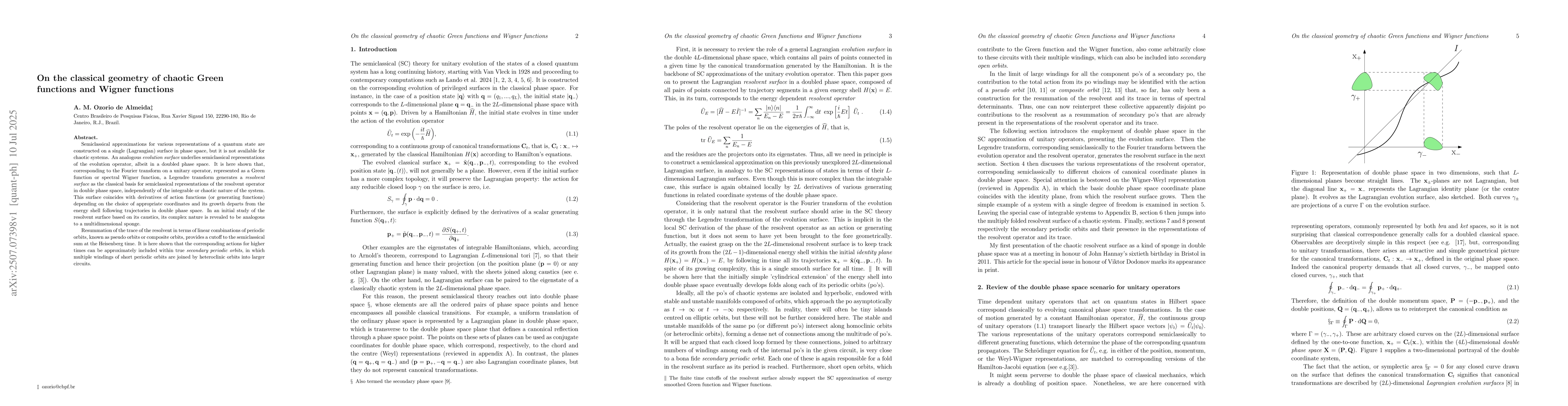 Semiclassical approximations for various representations of a quantum state are constructed on a single (Lagrangian) surface in phase space, but it is not available for chaotic systems. An analogous evolution surface underlies semiclassical representations of the evolution operator, albeit in a doubled phase space. It is here shown that, corresponding to the Fourier transform on a unitary operator, represented as a Green function or spectral Wigner function, a Legendre transform generates a resolvent surface as the classical basis for semiclassical representations of the resolvent operator in double phase space, independently of the integrable or chaotic nature of the system. This surface coincides with derivatives of action functions (or generating functions) depending on the choice of appropriate coordinates and its growth departs from the energy shell following trajectories in double phase space. In an initial study of the resolvent surface based on its caustics, its complex nature is revealed to be analogous to a multidimensional sponge. Resummation of the trace of the resolvent in terms of linear combinations of periodic orbits, known as pseudo orbits or composite orbits, provides a cutoff to the semiclassical sum at the Heisenberg time. It is here shown that the corresponding actions for higher times can be approximately included within true secondary periodic orbits, in which multiple windings of short periodic orbits are joined by heteroclinic orbits into larger circuits.