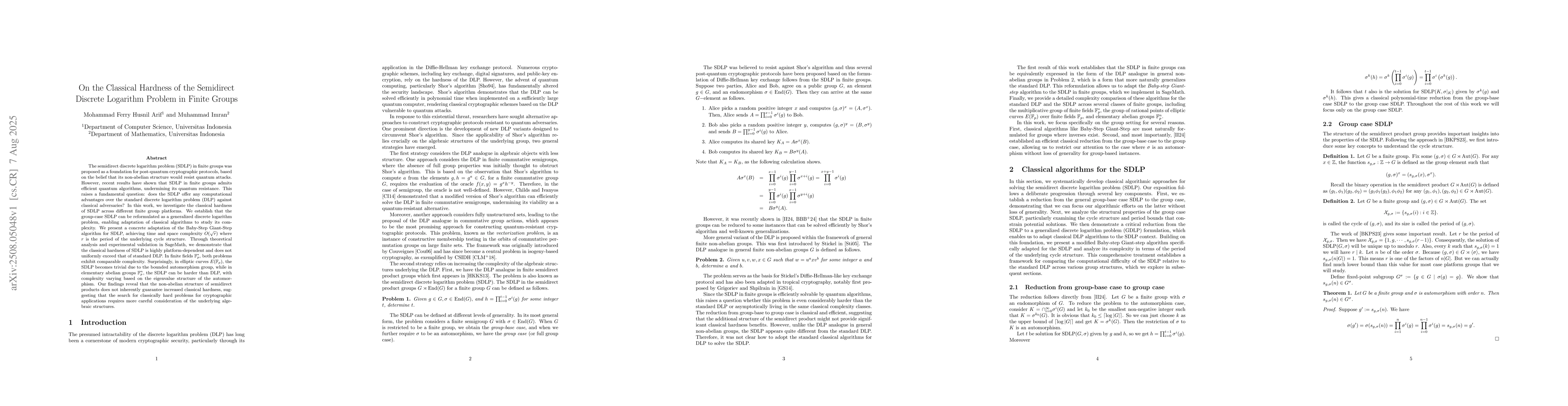 The semidirect discrete logarithm problem (SDLP) in finite groups was proposed as a foundation for post-quantum cryptographic protocols, based on the belief that its non-abelian structure would resist quantum attacks. However, recent results have shown that SDLP in finite groups admits efficient quantum algorithms, undermining its quantum resistance. This raises a fundamental question: does the SDLP offer any computational advantages over the standard discrete logarithm problem (DLP) against classical adversaries? In this work, we investigate the classical hardness of SDLP across different finite group platforms. We establish that the group-case SDLP can be reformulated as a generalized discrete logarithm problem, enabling adaptation of classical algorithms to study its complexity. We present a concrete adaptation of the Baby-Step Giant-Step algorithm for SDLP, achieving time and space complexity $O(\sqrt{r})$ where $r$ is the period of the underlying cycle structure. Through theoretical analysis and experimental validation in SageMath, we demonstrate that the classical hardness of SDLP is highly platform-dependent and does not uniformly exceed that of standard DLP. In finite fields $\mathbb{F}_p^*$, both problems exhibit comparable complexity. Surprisingly, in elliptic curves $E(\mathbb{F}_p)$, the SDLP becomes trivial due to the bounded automorphism group, while in elementary abelian groups $\mathbb{F}_p^n$, the SDLP can be harder than DLP, with complexity varying based on the eigenvalue structure of the automorphism. Our findings reveal that the non-abelian structure of semidirect products does not inherently guarantee increased classical hardness, suggesting that the search for classically hard problems for cryptographic applications requires more careful consideration of the underlying algebraic structures.