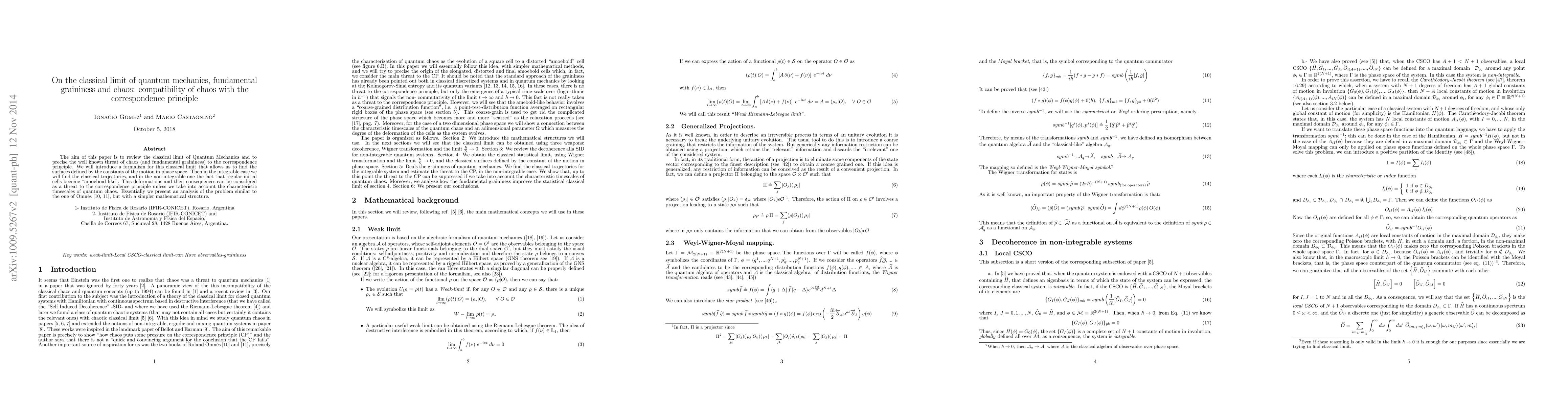 The aim of this paper is to review the classical limit of Quantum Mechanics and to precise the well known threat of chaos (and fundamental graininess)to the correspondence principle. We will introduce a formalism for this classical limit that allows us to find the surfaces defined by the constants of the motion in phase space. Then in the integrable case we will find the classical trajectories, and in the non-integrable one the fact that regular initial cells become "amoeboid-like". This deformations and their consequences can be considered as a threat to the correspondence principle unless we take into account the characteristic timescales of quantum chaos. Essentially we present an analysis of the problem similar to the one of Omn\`{e}s [10,11], but with a simpler mathematical structure.