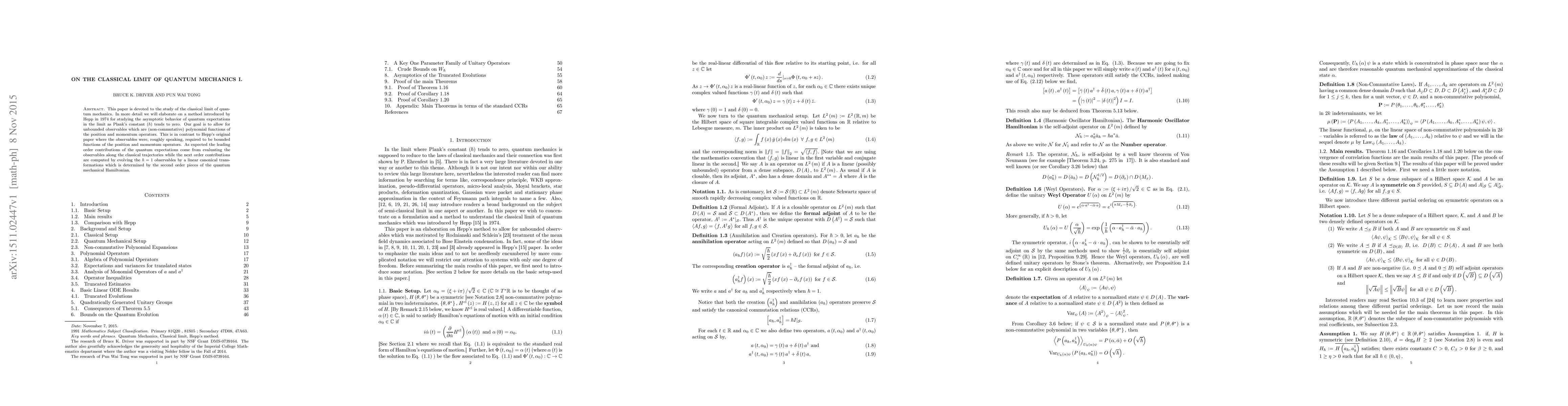 This paper is devoted to the study of the classical limit of quantum mechanics. In more detail we will elaborate on a method introduced by Hepp in 1974 for studying the asymptotic behavior of quantum expectations in the limit as Plank's constant ($\hbar)$ tends to zero. Our goal is to allow for unbounded observables which are (non-commutative) polynomial functions of the position and momentum operators. This is in contrast to Hepp's original paper where the observables were, roughly speaking, required to be bounded functions of the position and momentum operators. As expected the leading order contributions of the quantum expectations come from evaluating the observables along the classical trajectories while the next order contributions are computed by evolving the $\hbar=1$ observables by a linear canonical transformations which is determined by the second order pieces of the quantum mechanical Hamiltonian.