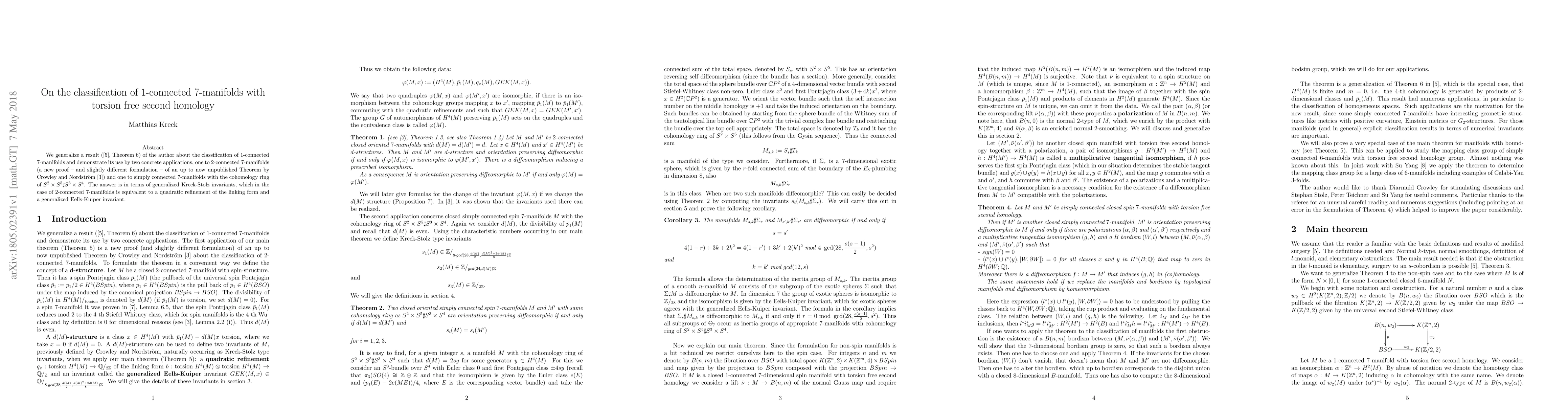 This paper generalizes the classification of 1-connected 7-manifolds with torsion-free second homology, applying the result to classify 2-connected 7-manifolds and simply connected 7-manifolds with specific cohomology rings, using generalized Kreck-Stolz invariants.