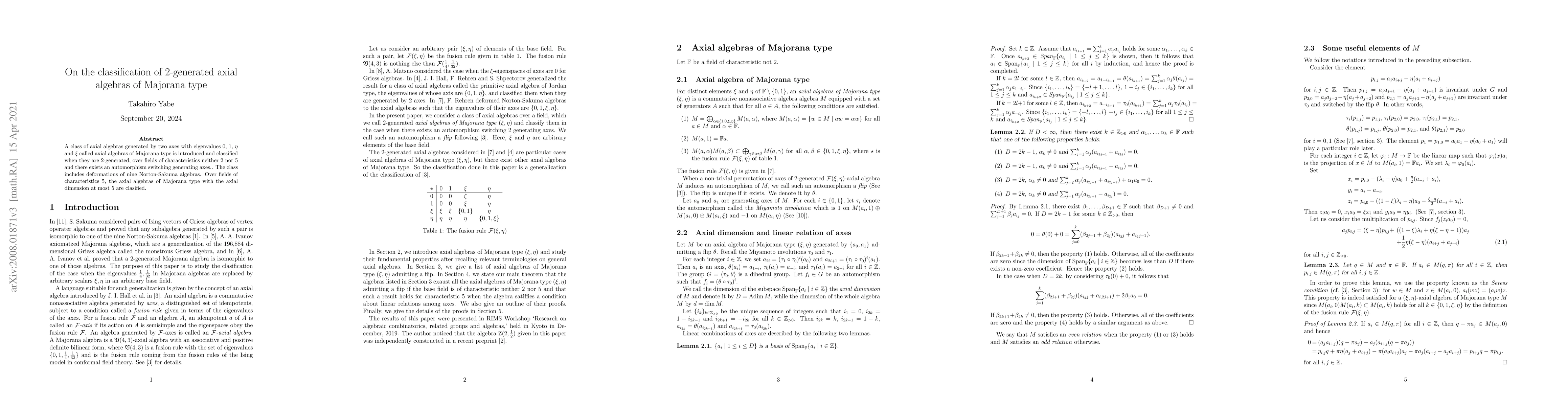 Researchers classify 2-generated axial algebras of Majorana type over specific fields, including deformations of nine Norton-Sakuma algebras and classification for characteristics 5.