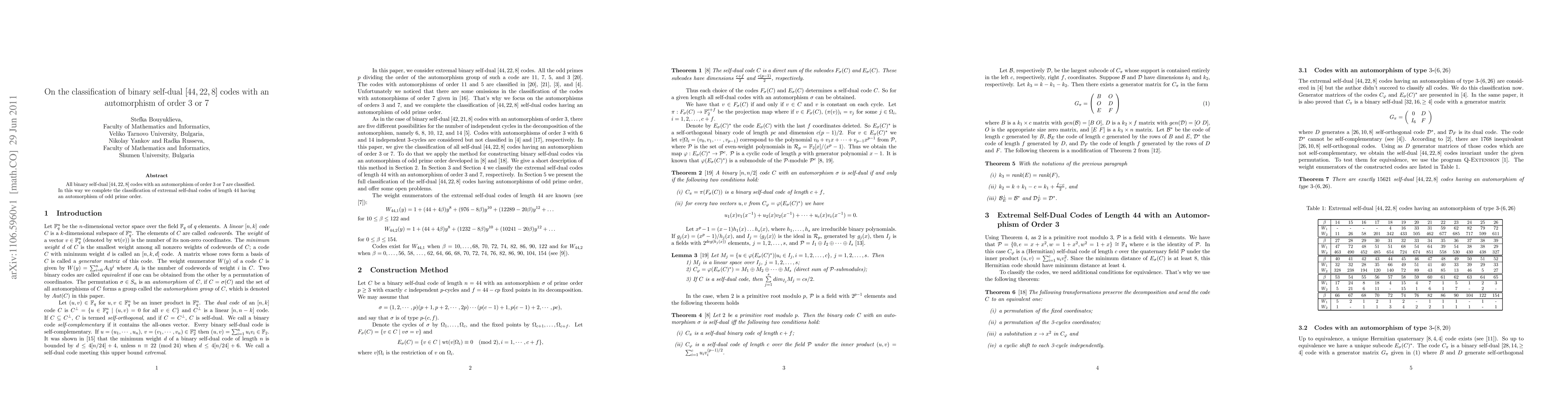 All binary self-dual [44,22,8] codes with an automorphism of order 3 or 7 are classified. In this way we complete the classification of extremal self-dual codes of length 44 having an automorphism of odd prime order.