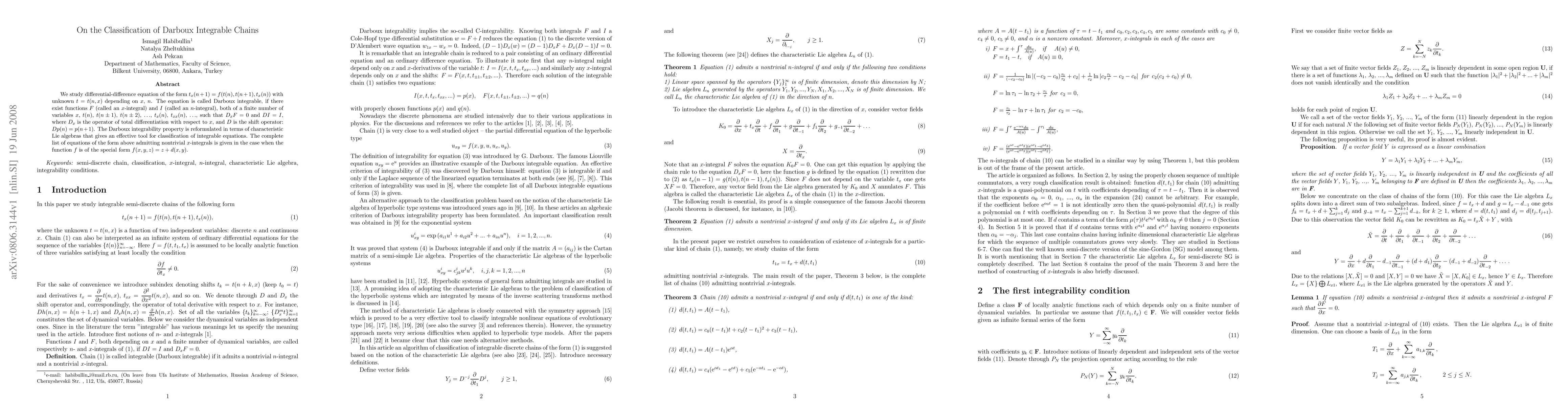 This work is notable for its comprehensive classification of integrable semi-discrete hyperbolic chains using characteristic Lie algebras, a method that has not been extensively applied in this context before.