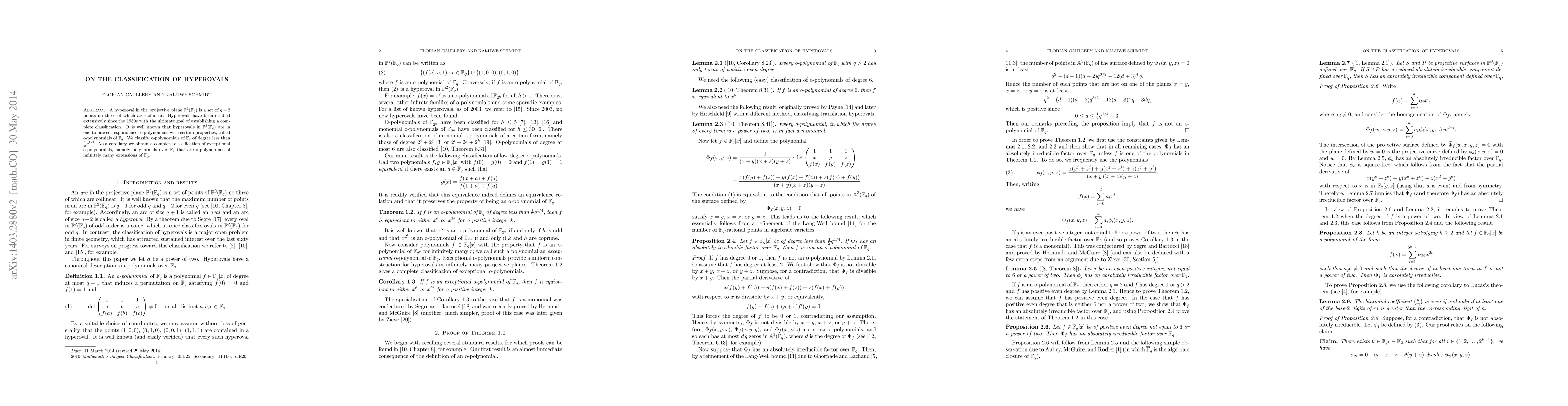 Researchers classify o-polynomials of $rac{1}{2}q^{1/4}$ degree, leading to a complete classification of hyperovals in the projective plane $ extbf{≯}_q$. This work establishes a connection between o-polynomials and the existence of hyperovals.
