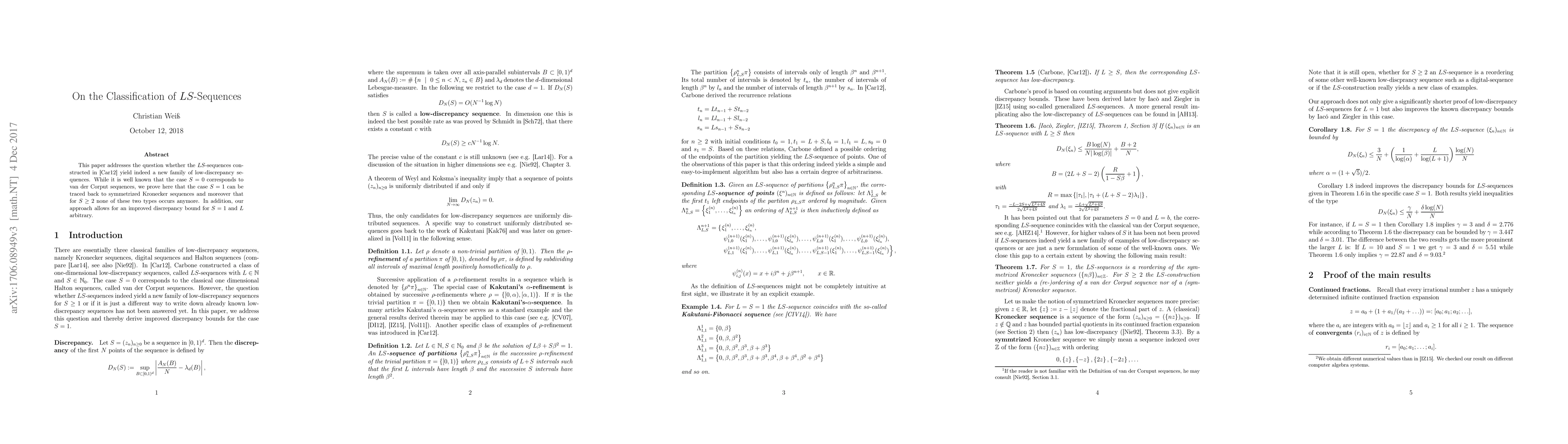 This paper adresses the question whether the $LS$-sequences constructed by Carbone yield indeed a new family of low discrepancy sequences. While it is well known that the case $S=0$ corresponds to van der Corput sequences, we prove here that the case $S=1$ can be traced back to two-sided Kronecker sequences and moreover that for $S \geq 2$ none of these two types occurs anymore. In addition, our approach allows for an improved discrepancy bound for $S=1$ and $L$ arbitrary.