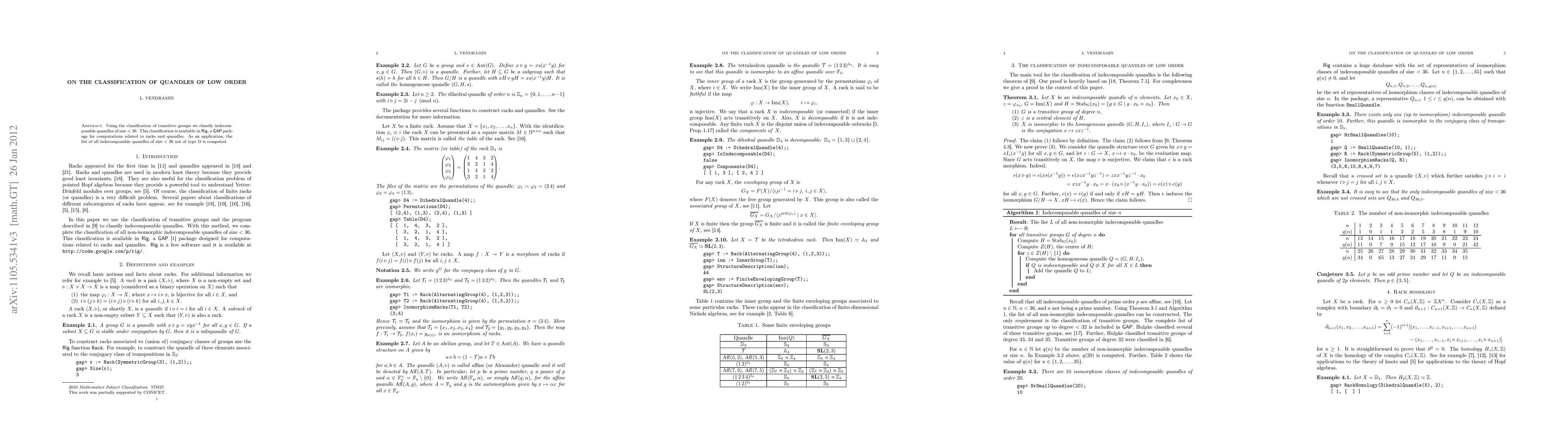 This paper classifies indecomposable quandles of size less than 36 using transitive group classification, with results available in the Rig GAP package. An application of this classification computes all indecomposable quandles of size <36 that are not of type D.