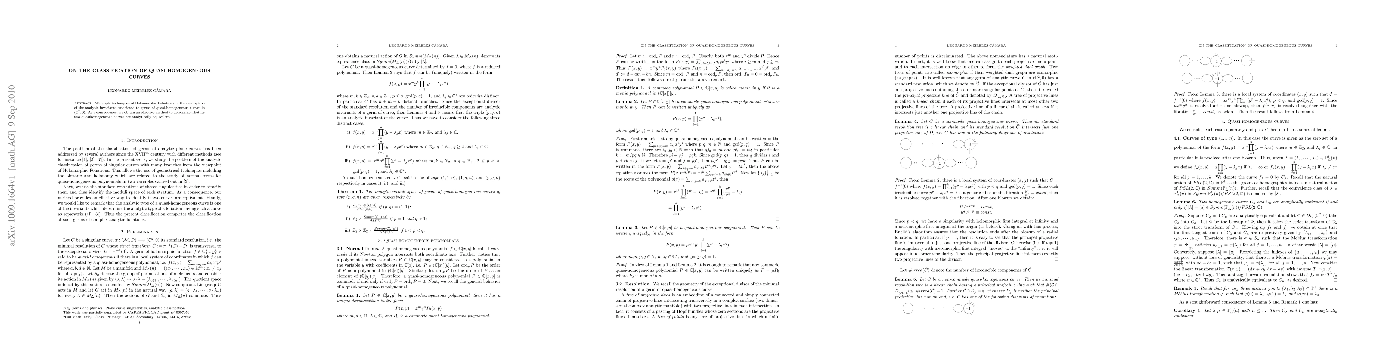 The research used a combination of algebraic geometry and singularity theory to classify quasi-homogeneous curves.