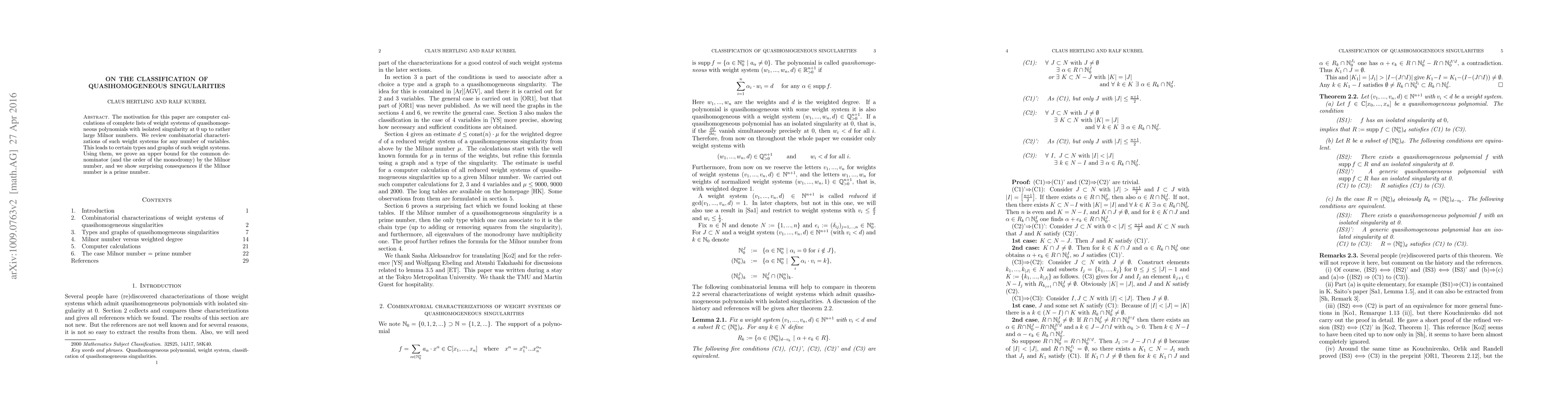 This paper classifies quasihomogeneous singularities by analyzing weight systems of quasihomogeneous polynomials, establishing combinatorial characterizations and proving an upper bound for the common denominator related to the Milnor number, with special insights when the Milnor number is prime.