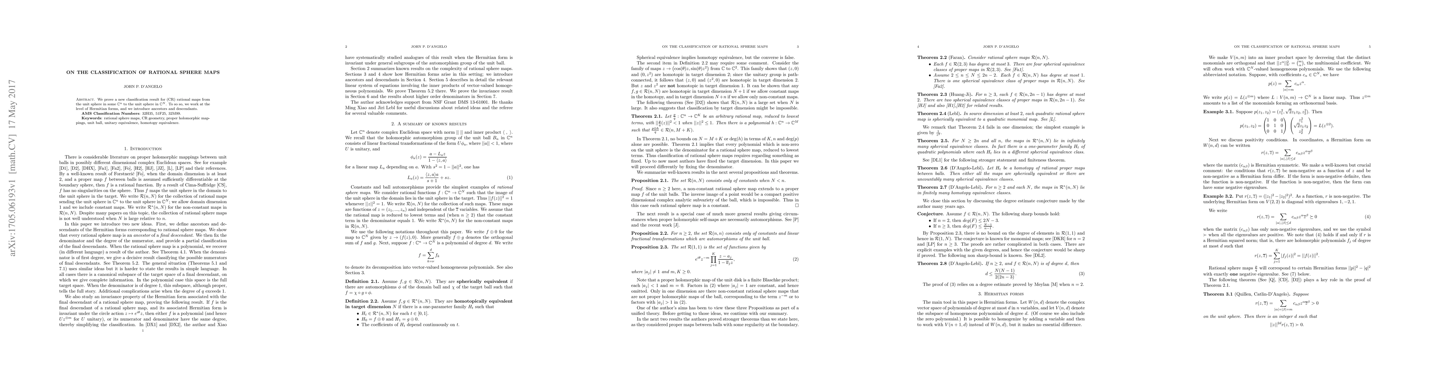 We prove a new classification result for (CR) rational maps from the unit sphere in some ${\mathbb C}^n$ to the unit sphere in ${\mathbb C}^N$. To so so, we work at the level of Hermitian forms, and we introduce ancestors and descendants.