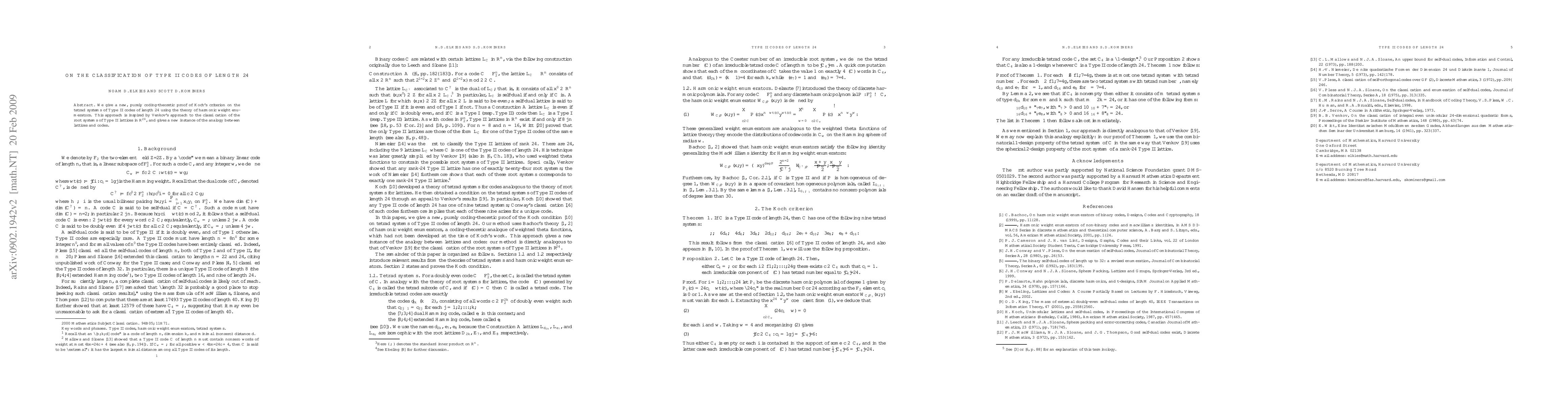 This paper presents a new coding-theoretic proof for Koch's criterion on Type II codes of length 24, leveraging harmonic weight enumerators. Inspired by Venkov's lattice classification method, it establishes a novel parallel between lattice and code structures.