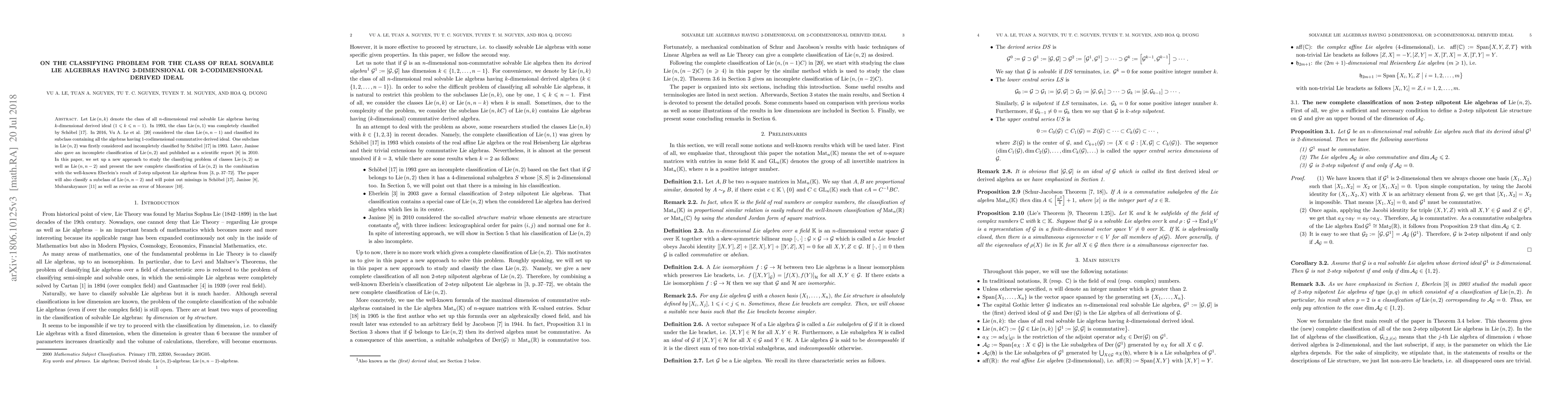 Let $\mathrm{Lie} \left(n, k\right)$ denote the class of all $n$-dimensional real solvable Lie algebras having $k$-dimensional derived ideal ($1 \leqslant k \leqslant n-1$). In 1993, the class $\mathrm{Lie} \left(n, 1\right)$ was completely classified by Sch\"obel \cite{Sch93}. In 2016, Vu A. Le et al. \cite{VHTHT16} considered the class $\mathrm{Lie} \left(n, n-1\right)$ and classified its subclass containing all the algebras having 1-codimensional commutative derived ideal. One subclass in {\Li} was firstly considered and incompletely classified by Sch\"obel \cite{Sch93} in 1993. Later, Janisse also gave an incomplete classification of {\Li} and published as a scientific report \cite{Jan10} in 2010. In this paper, we set up a new approach to study the classifying problem of classes {\Li} as well as {\li} and present the new complete classification of {\Li} in the combination with the well-known Eberlein's result of 2-step nilpotent Lie algebras from \cite[p.\,37--72]{Ebe03}. The paper will also classify a subclass of {\li} and will point out missings in Sch\"obel \cite{Sch93}, Janisse \cite{Jan10}, Mubarakzyanov \cite{Mub63a} as well as revise an error of Morozov \cite{Mor58}.
