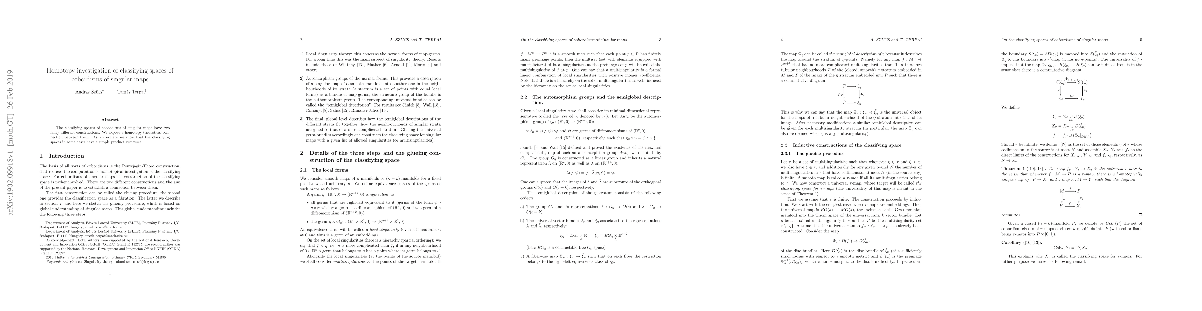 Summary: This paper establishes a homotopy theoretical link between two constructions of classifying spaces of cobordisms of singular maps, revealing a simple product structure in certain cases.