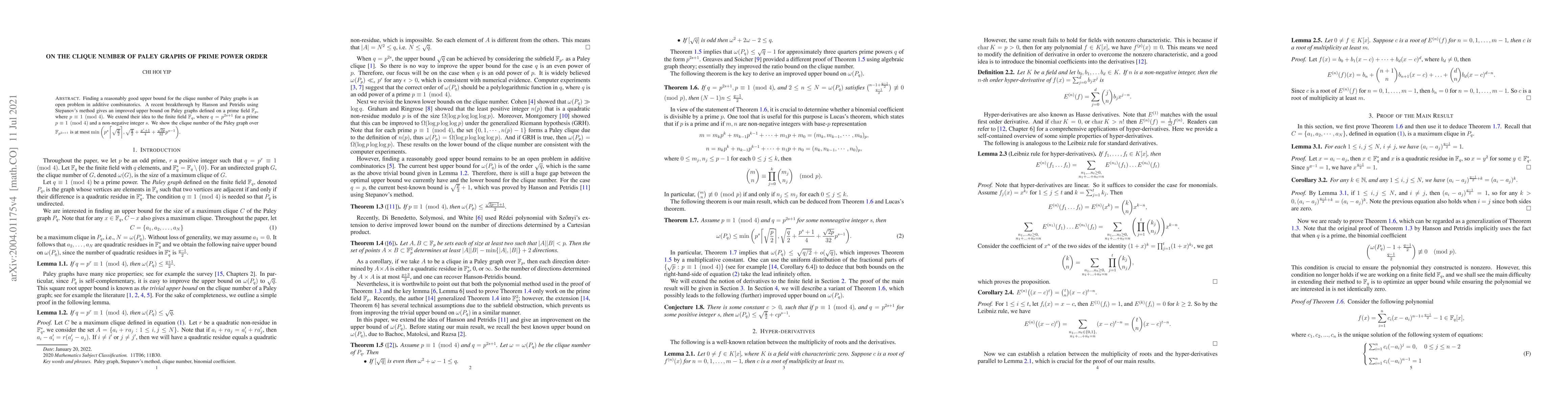 Researchers improved an upper bound for the clique number of Paley graphs with prime power order, showing a new limit that depends on both the prime power and its exponent.