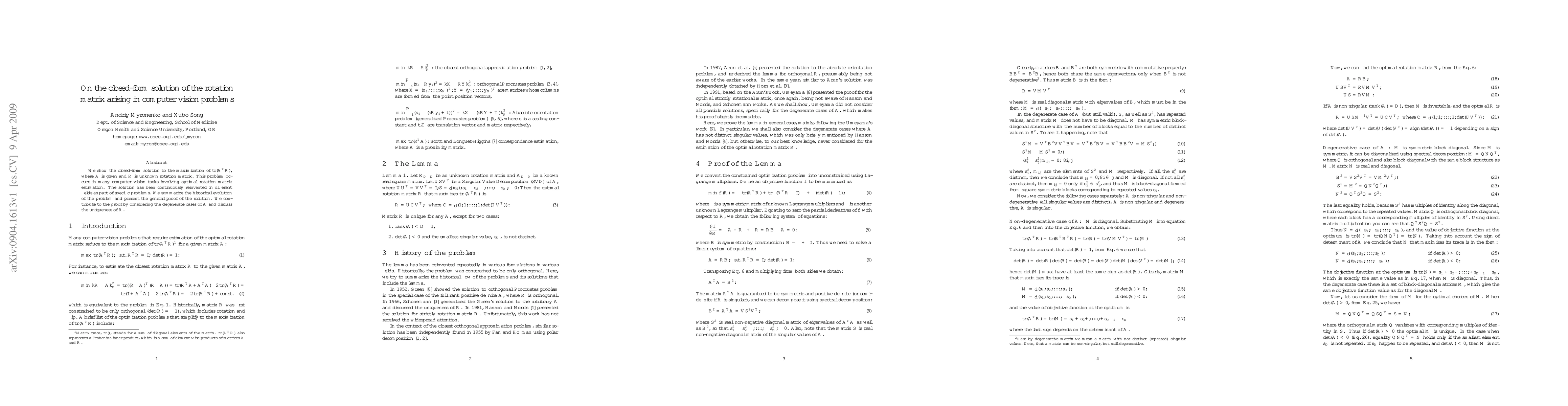 We show the closed-form solution to the maximization of trace(A'R), where A is given and R is unknown rotation matrix. This problem occurs in many computer vision tasks involving optimal rotation matrix estimation. The solution has been continuously reinvented in different fields as part of specific problems. We summarize the historical evolution of the problem and present the general proof of the solution. We contribute to the proof by considering the degenerate cases of A and discuss the uniqueness of R.