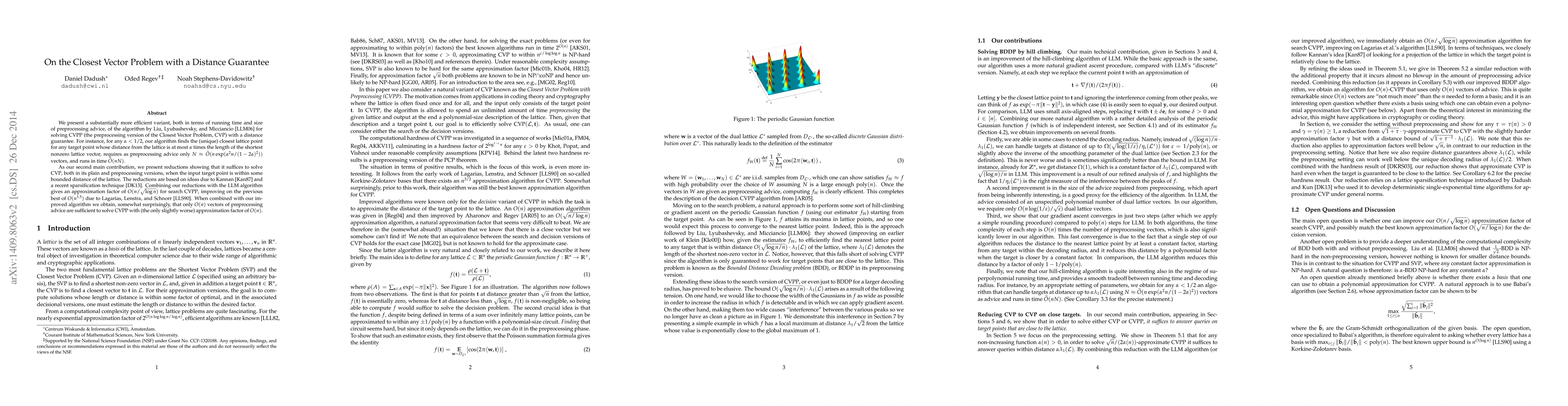 This paper presents a more efficient algorithm for solving the preprocessing version of the Closest Vector Problem (CVPP) with a distance guarantee, requiring significantly less preprocessing advice and running time compared to previous methods. The authors also demonstrate reductions showing that solving CVPP within a bounded distance from the lattice suffices for solving both plain and preprocessing versions of CVP, achieving an improved approximation factor of $O(n/\sqrt{\log n})$.