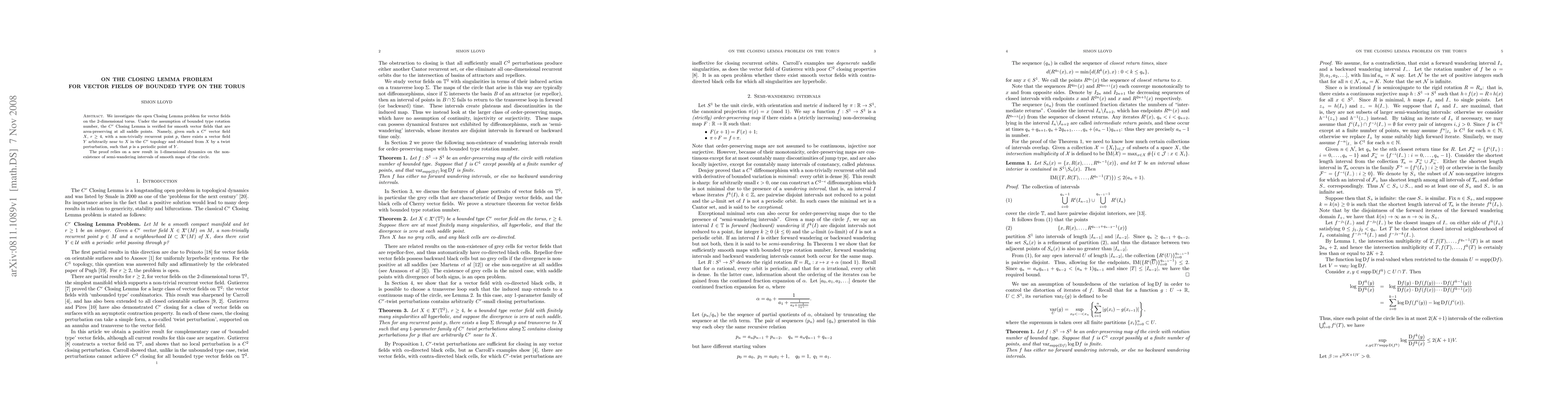 We investigate the open Closing Lemma problem for vector fields on the 2-dimensional torus. Under the assumption of bounded type rotation number, the $C^r$ Closing Lemma is verified for smooth vector fields that are area-preserving at all saddle points. Namely, given such a $C^r$ vector field $X$, $r\geq 4$, with a non-trivially recurrent point $p$, there exists a vector field $Y$ arbitrarily near to $X$ in the $C^r$ topology and obtained from $X$ by a twist perturbation, such that $p$ is a periodic point of $Y$. The proof relies on a new result in 1-dimensional dynamics on the non-existence of semi-wandering intervals of smooth maps of the circle.