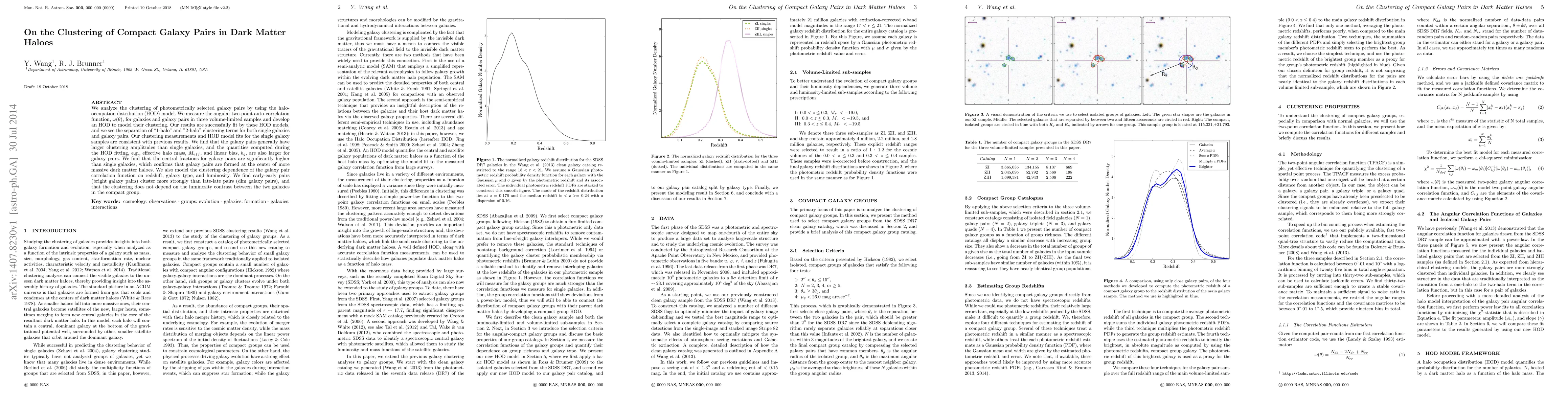 We analyze the clustering of photometrically selected galaxy pairs by using the halo-occupation distribution (HOD) model. We measure the angular two-point auto-correlation function, $\omega(\theta)$, for galaxies and galaxy pairs in three volume-limited samples and develop an HOD to model their clustering. Our results are successfully fit by these HOD models, and we see the separation of "1-halo" and "2-halo" clustering terms for both single galaxies and galaxy pairs. Our clustering measurements and HOD model fits for the single galaxy samples are consistent with previous results. We find that the galaxy pairs generally have larger clustering amplitudes than single galaxies, and the quantities computed during the HOD fitting, e.g., effective halo mass, $M_{eff}$, and linear bias, $b_{g}$, are also larger for galaxy pairs. We find that the central fractions for galaxy pairs are significantly higher than single galaxies, which confirms that galaxy pairs are formed at the center of more massive dark matter haloes. We also model the clustering dependence of the galaxy pair correlation function on redshift, galaxy type, and luminosity. We find early-early pairs (bright galaxy pairs) cluster more strongly than late-late pairs (dim galaxy pairs), and that the clustering does not depend on the luminosity contrast between the two galaxies in the compact group.