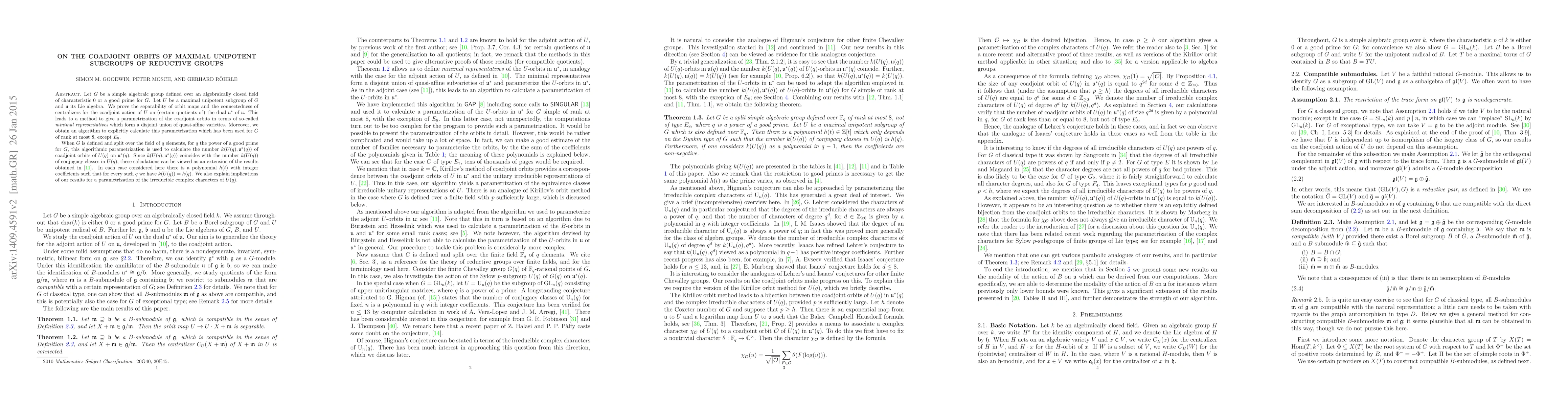 Let G be a simple algebraic group defined over an algebraically closed field of characteristic 0 or a good prime for G. Let U be a maximal unipotent subgroup of G and \u its Lie algebra. We prove the separability of orbit maps and the connectedness of centralizers for the coadjoint action of U on (certain quotients of) the dual \u* of \u. This leads to a method to give a parametrization of the coadjoint orbits in terms of so-called minimal representatives which form a disjoint union of quasi-affine varieties. Moreover, we obtain an algorithm to explicitly calculate this parametrization which has been used for G of rank at most 8, except E8. When G is defined and split over the field of q elements, for q the power of a good prime for G, this algorithmic parametrization is used to calculate the number k(U(q), \u*(q)) of coadjoint orbits of U(q) on \u*(q). Since k(U(q), \u*(q)) coincides with the number k(U(q)) of conjugacy classes in U(q), these calculations can be viewed as an extension of the results obtained in our earlier paper. In each case considered here there is a polynomial h(t) with integer coefficients such that for every such q we have k(U(q)) = h(q).