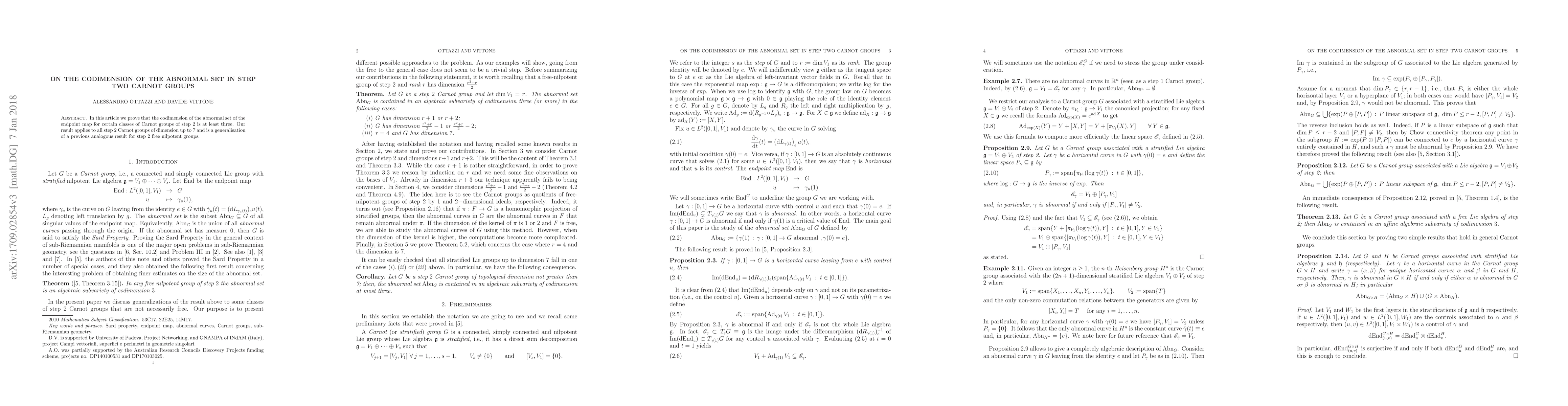This paper proves that the abnormal set's codimension for endpoint maps in specific step 2 Carnot groups is at least three, generalizing a previous result for step 2 free nilpotent groups. The findings apply to all step 2 Carnot groups with dimensions up to 7.