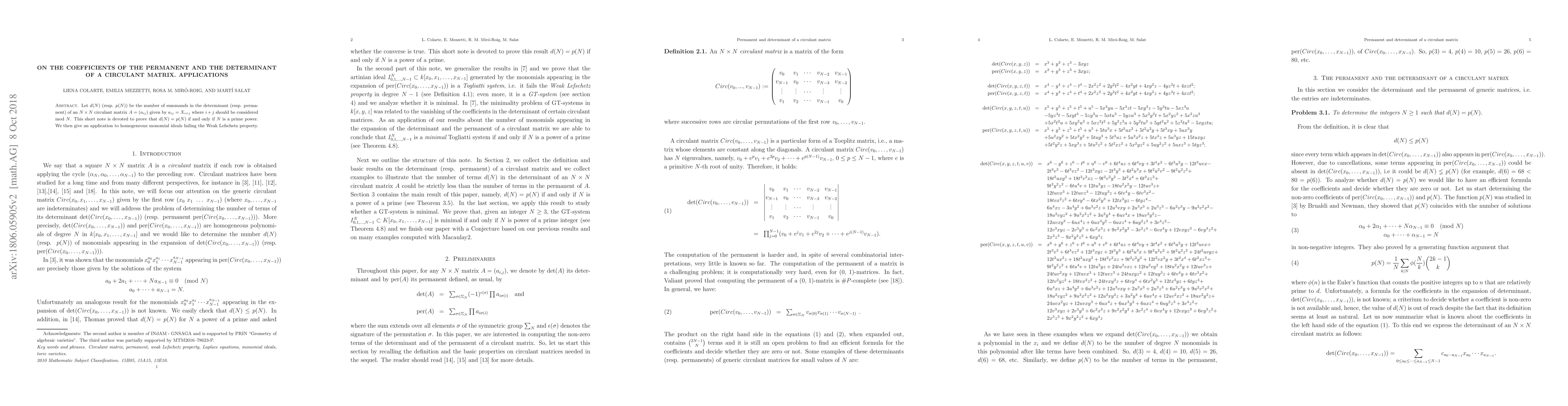 This paper proves that the number of summands in the determinant equals the number in the permanent of an $N \times N$ circulant matrix if and only if $N$ is a prime power. It also applies this result to homogeneous monomial ideals that fail the Weak Lefschetz property.