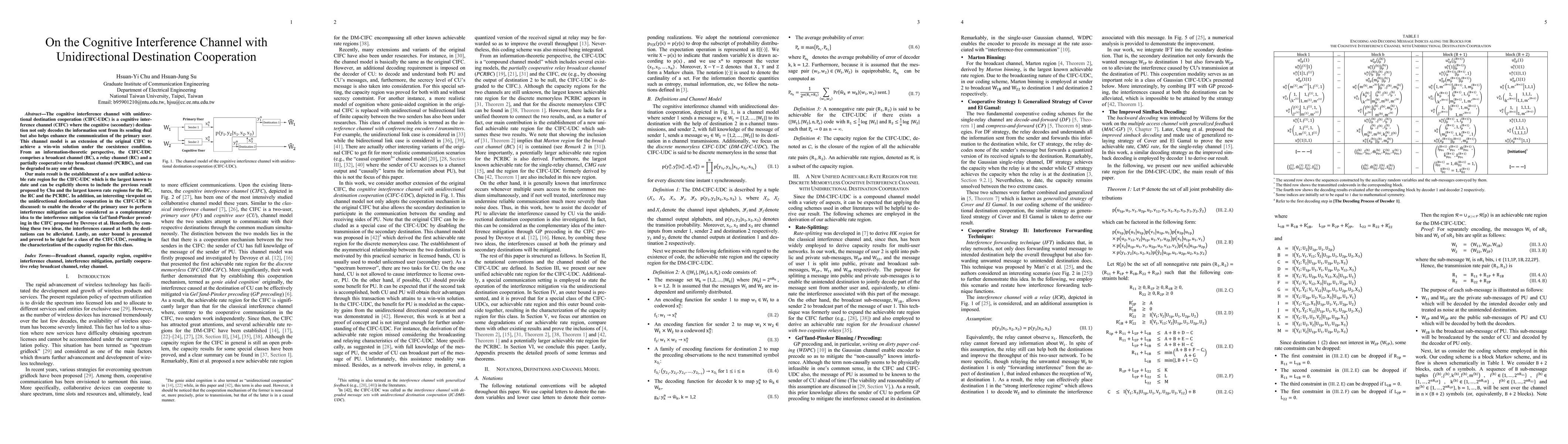 The cognitive interference channel with unidirectional destination cooperation (CIFC-UDC) is a cognitive interference channel (CIFC) where the cognitive (secondary) destination not only decodes the information sent from its sending dual but also helps enhance the communication of the primary user. This channel model is an extension of the original CIFC to achieve a win-win solution under the coexistence condition. From an information-theoretic perspective, the CIFC-UDC comprises a broadcast channel (BC), a relay channel (RC) and a partially cooperative relay broadcast channel (PCRBC), and can be degraded to any one of them. Our main result is the establishment of a new unified achieva-ble rate region for the CIFC-UDC which is the largest known to date and can be explicitly shown to include the previous result proposed by Chu and the largest known rate regions for the BC, the RC and the PCRBC. In addition, an interesting viewpoint on the unidirectional destination cooperation in the CIFC-UDC is discussed: to enable the decoder of the primary user to perform interference mitigation can be considered as a complementary idea to the interference mitigation via Gel'fand-Pinsker precod-ing in the CIFC proposed by Devroye et al. Henceforth, by com-bing these two ideas, the interferences caused at both the desti-nations can be alleviated. Lastly, an outer bound is presented and proved to be tight for a class of the CIFC-UDC, resulting in the characterization of the capacity region for this class.