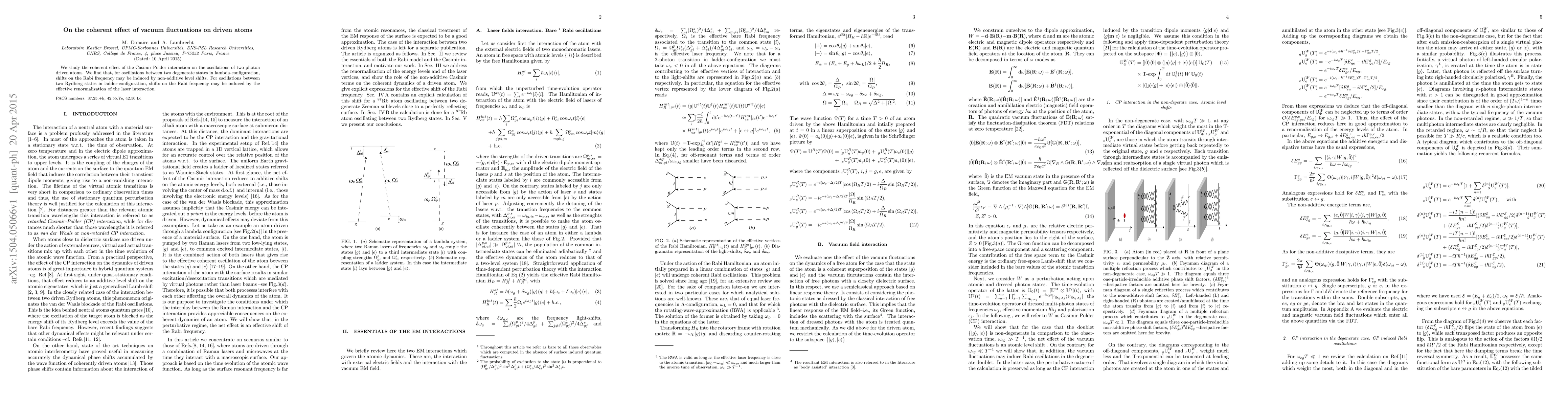 We study the coherent effect of the Casimir-Polder interaction on the oscillations of two-photon driven atoms. We find that, for oscillations between two degenerate states in lambda-configuration, shifts on the Rabi frequency may be induced by non-additive level shifts. For oscillations between two Rydberg states in ladder-configuration, shifts on the Rabi frequency may be induced by the effective renormalization of the laser interaction.